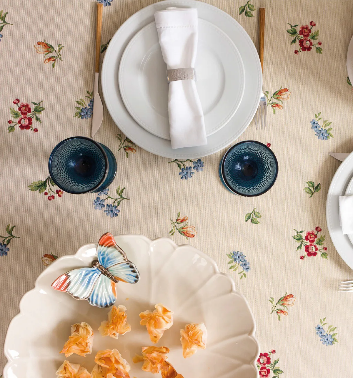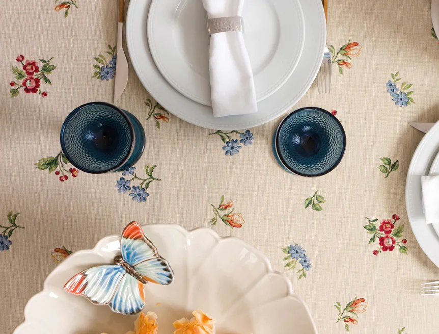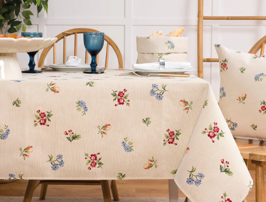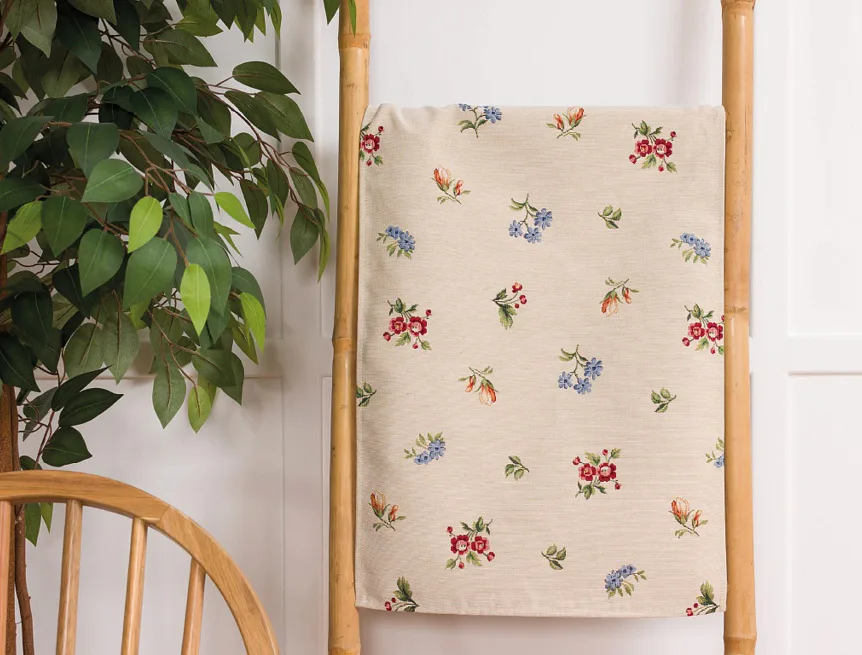 Ubrus Floweret s drobnými květy je ideální doplněk pro každou příležitost. Jemný design s rustikálním nádechem se pojí s praktičností díky pevnému a odolnému materiálu.