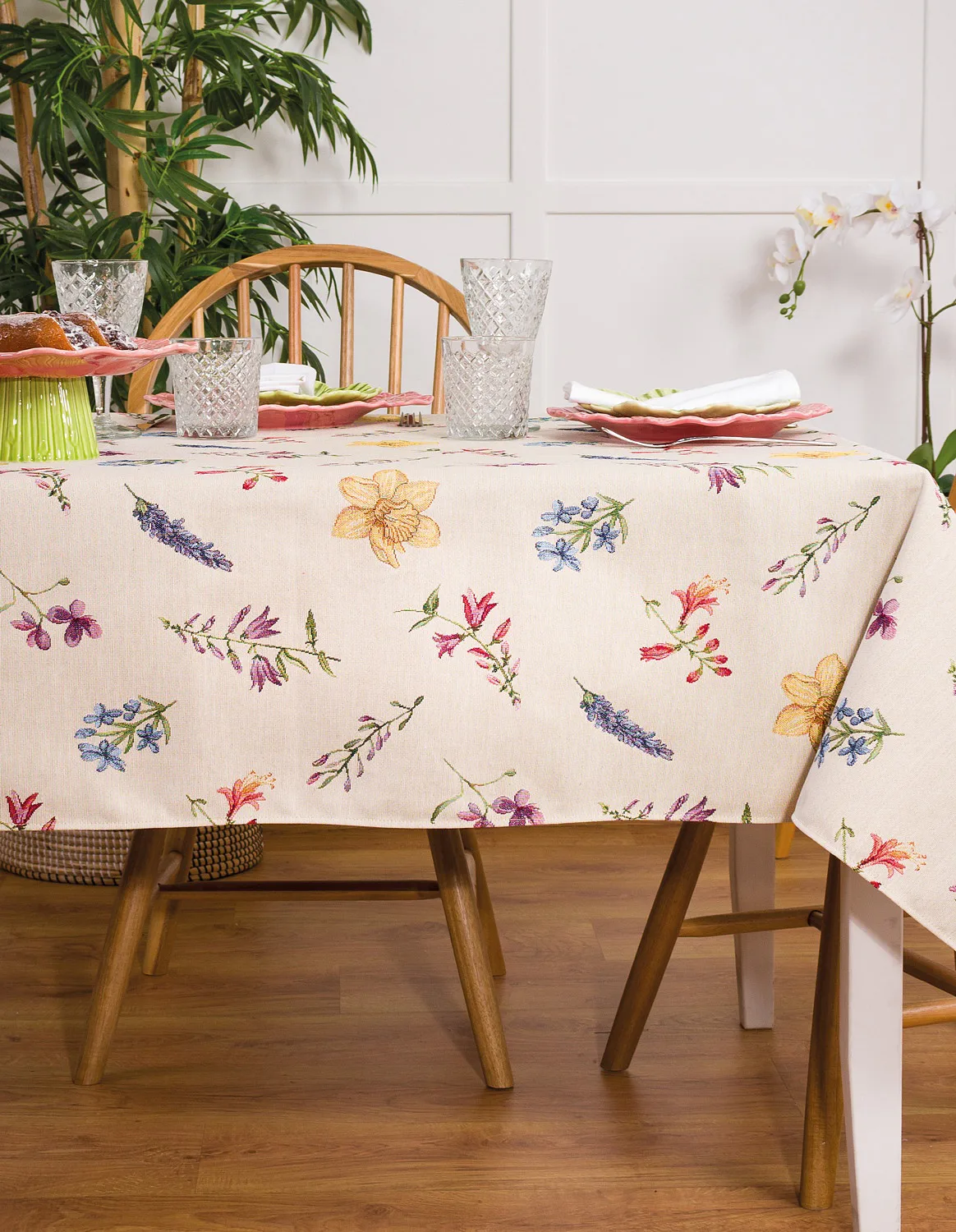 Ubrus Fragant Allover s rozličnými barevnými květy je ideální doplněk pro každou příležitost. Jemný design s rustikálním nádechem se pojí s praktičností díky pevnému a odolnému materiálu.