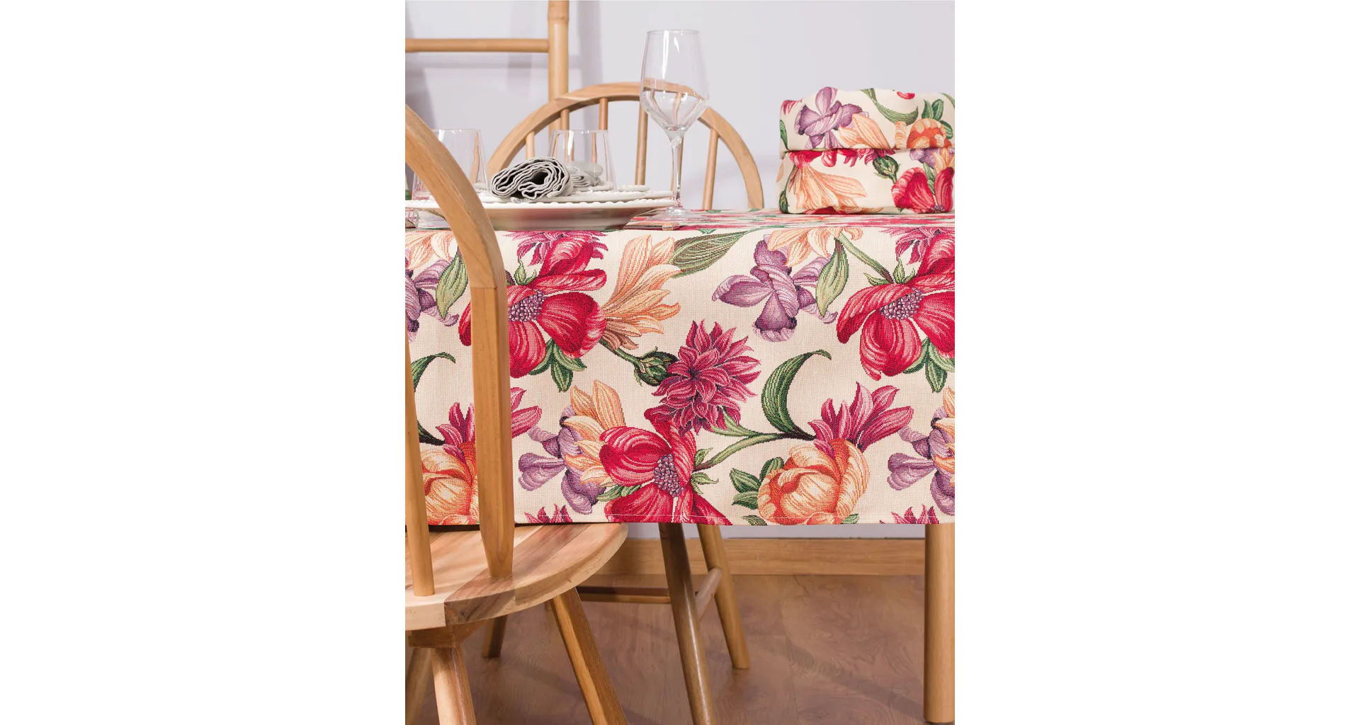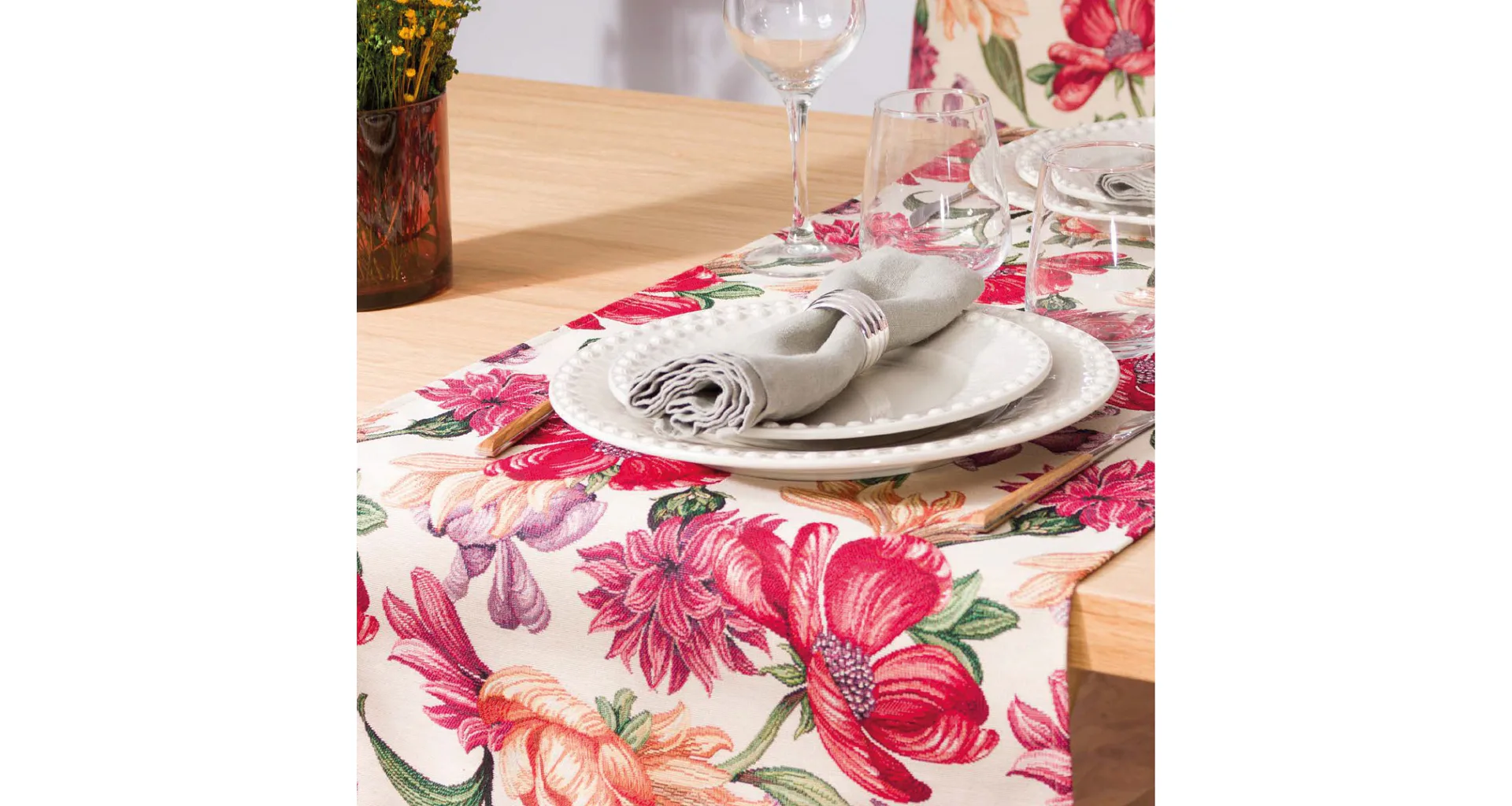 Ubrus Iris Allover s výraznými pestrobarevnými květy je ideální doplněk pro každou příležitost. Originální design s rustikálním nádechem se pojí s praktičností díky pevnému a odolnému materiálu.