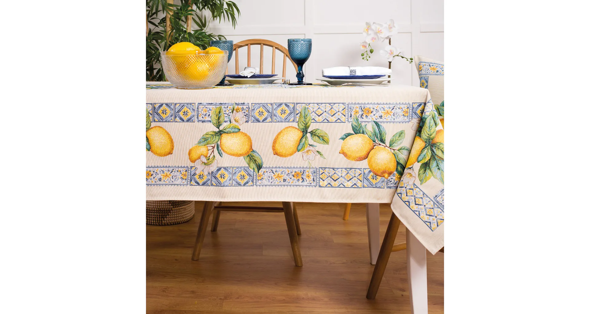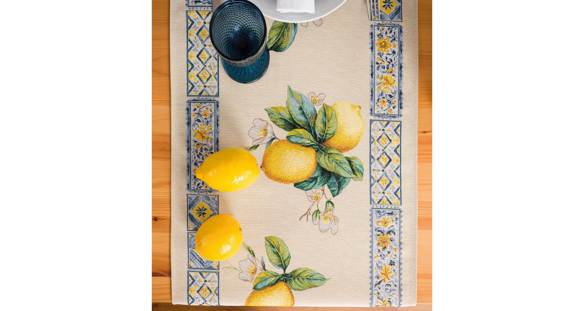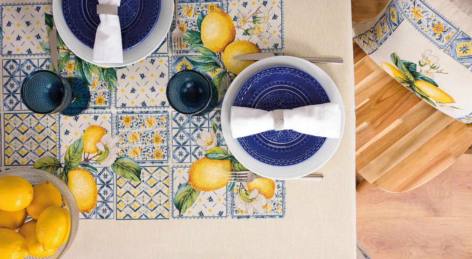 Ubrus Laymun s motivem citrusů zdobený nápaditým lemováním je ideální doplněk pro každou příležitost. Svěží design s rustikálním nádechem se pojí s praktičností díky pevnému a odolnému materiálu.