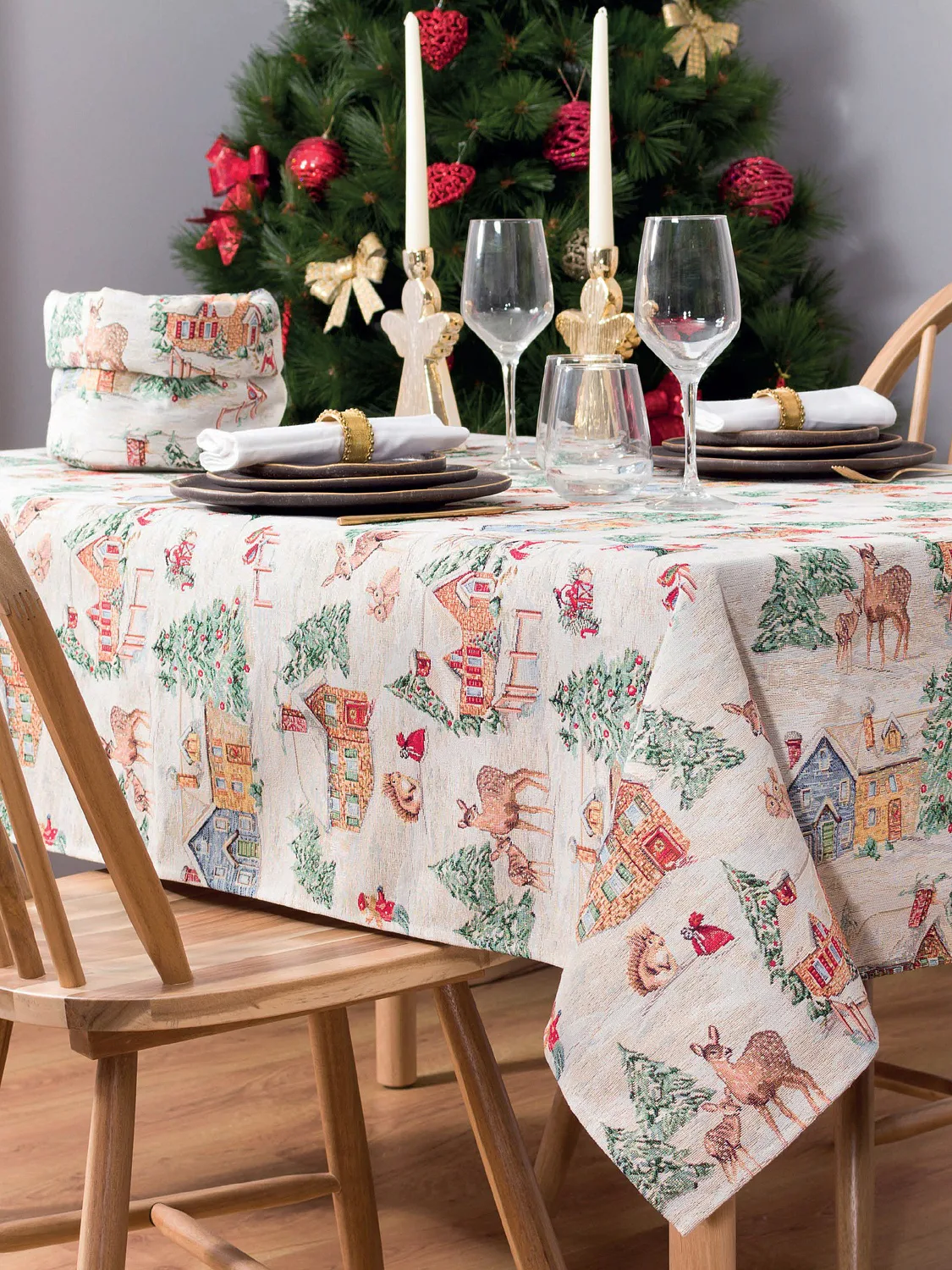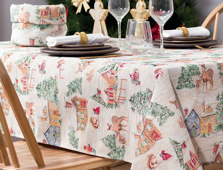 Ubrus Snowy Mountains s veselým zimním motivem je ideální doplněk pro každou příležitost. Atraktivní design se pojí s praktičností díky pevnému a odolnému materiálu.