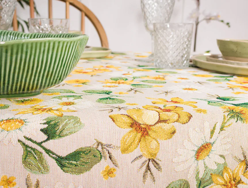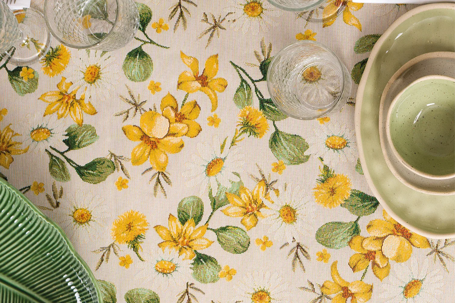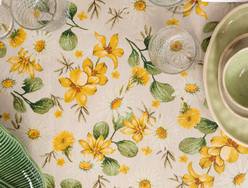 Ubrus Solis s motivem lučního kvítí je ideální doplněk pro každou příležitost. Jemný design s rustikálním nádechem se pojí s praktičností díky pevnému a odolnému materiálu.