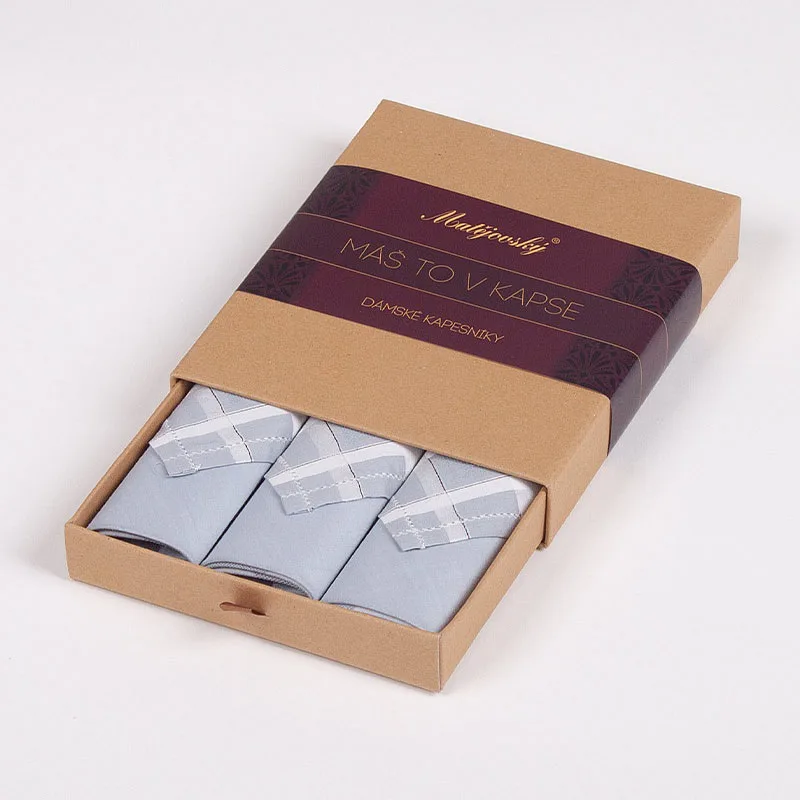 Elegance dotažená do posledního detailu. Tradiční bavlněný kapesník je nejen praktickým pomocníkem v celé řadě každodenních okamžiků, ale také symbolem elegance a vytříbeného stylu. Sada tří barevně sladěných látkových kapesníků, které vynikají hebkostí a savostí, se i díky originálnímu balení stane ideálním dárkem pro každou dámu.