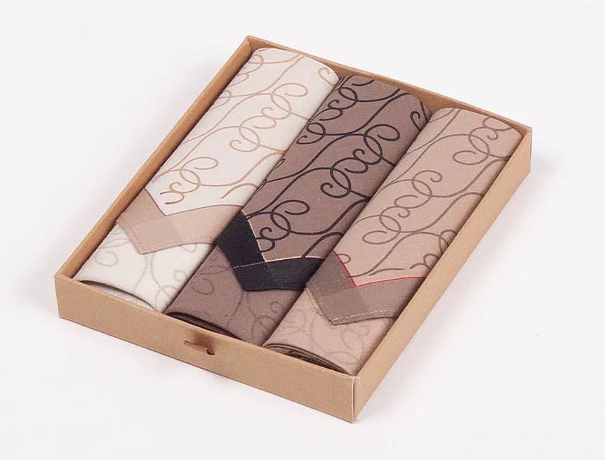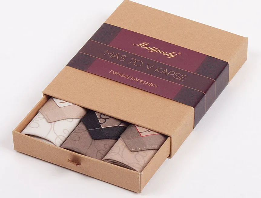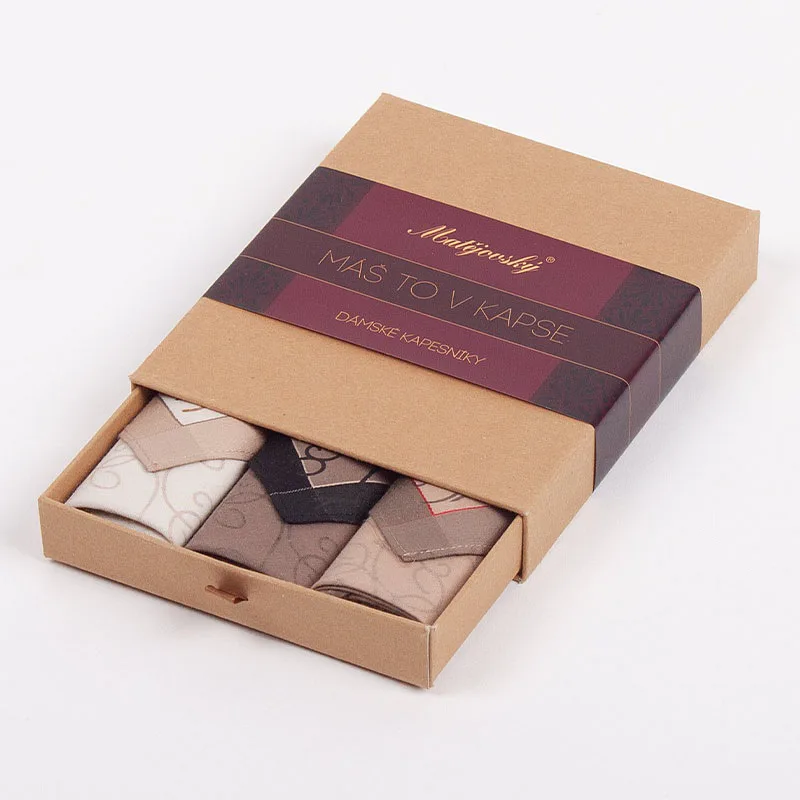 Elegance dotažená do posledního detailu. Tradiční bavlněný kapesník je nejen praktickým pomocníkem v celé řadě každodenních okamžiků, ale také symbolem elegance a vytříbeného stylu. Sada tří barevně sladěných látkových kapesníků, které vynikají hebkostí a savostí, se i díky originálnímu balení stane ideálním dárkem pro každou dámu.