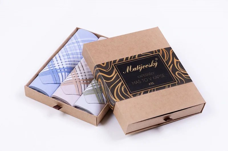 Elegance dotažená do posledního detailu. Tradiční bavlněný kapesník je nejen praktickým pomocníkem v celé řadě každodenních okamžiků, ale také symbolem elegance a vytříbeného stylu. Sada tří barevně sladěných látkových kapesníků, které vynikají hebkostí a savostí, se i díky originálnímu balení stane ideálním dárkem pro moderního gentlemana.