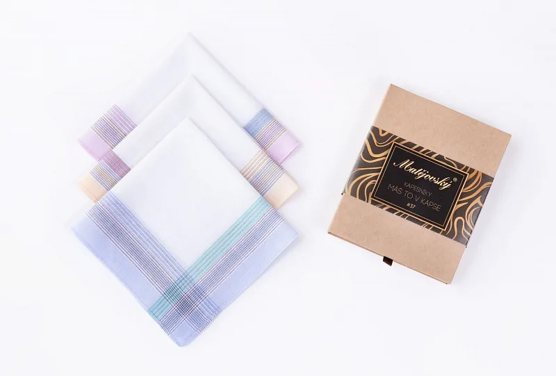 Elegance dotažená do posledního detailu. Tradiční bavlněný kapesník je nejen praktickým pomocníkem v celé řadě každodenních okamžiků, ale také symbolem elegance a vytříbeného stylu. Sada tří barevně sladěných látkových kapesníků, které vynikají hebkostí a savostí, se i díky originálnímu balení stane ideálním dárkem pro každou dámu.