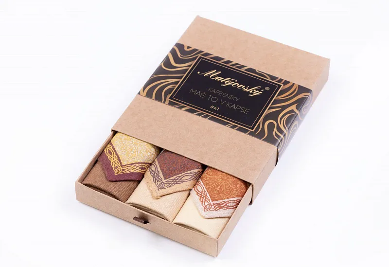 Elegance dotažená do posledního detailu. Tradiční bavlněný kapesník je nejen praktickým pomocníkem v celé řadě každodenních okamžiků, ale také symbolem elegance a vytříbeného stylu. Sada tří barevně sladěných látkových kapesníků, které vynikají hebkostí a savostí, se i díky originálnímu balení stane ideálním dárkem pro moderního gentlemana.