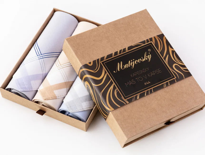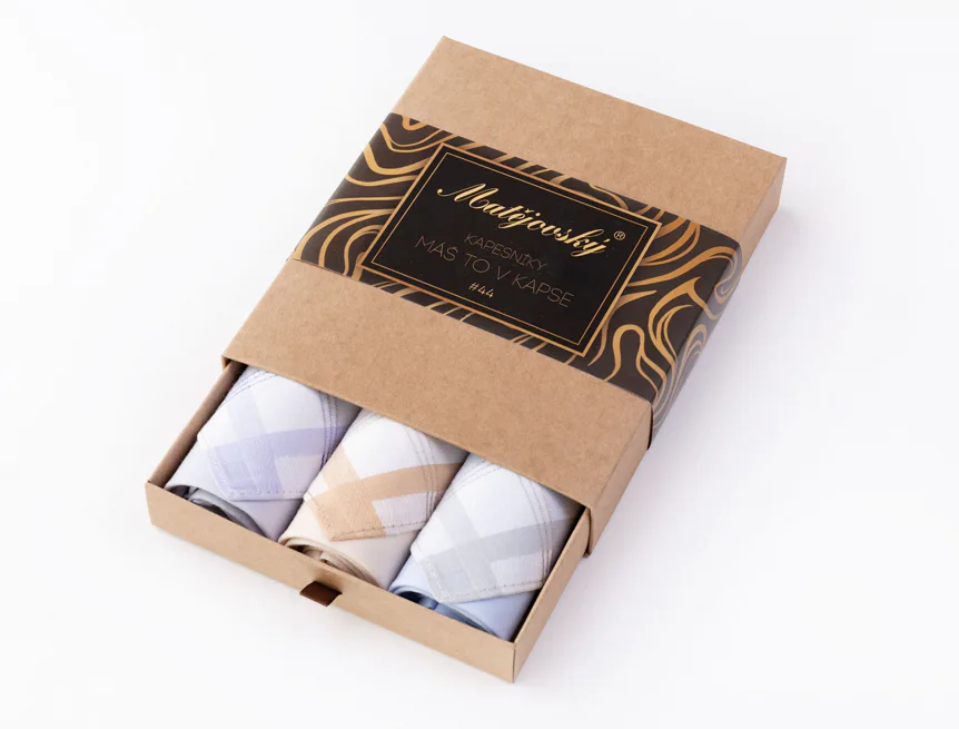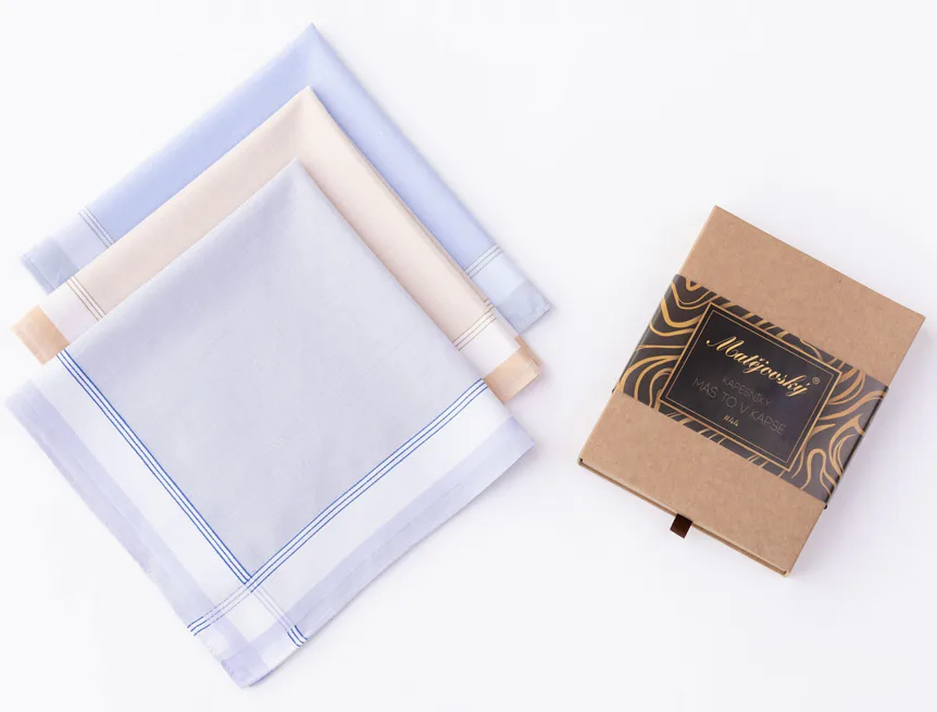 Elegance dotažená do posledního detailu. Tradiční bavlněný kapesník je nejen praktickým pomocníkem v celé řadě každodenních okamžiků, ale také symbolem elegance a vytříbeného stylu. Sada tří barevně sladěných látkových kapesníků, které vynikají hebkostí a savostí, se i díky originálnímu balení stane ideálním dárkem pro moderního gentlemana.