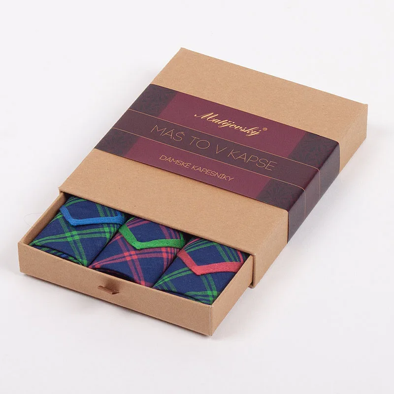 Elegance dotažená do posledního detailu. Tradiční bavlněný kapesník je nejen praktickým pomocníkem v celé řadě každodenních okamžiků, ale také symbolem elegance a vytříbeného stylu. Sada tří barevně sladěných látkových kapesníků, které vynikají hebkostí a savostí, se i díky originálnímu balení stane ideálním dárkem pro každou dámu.