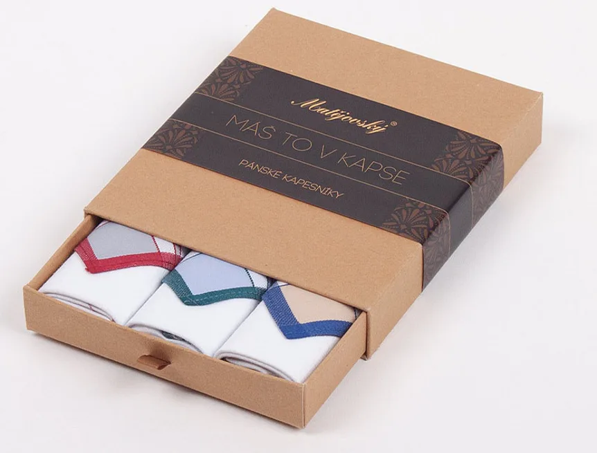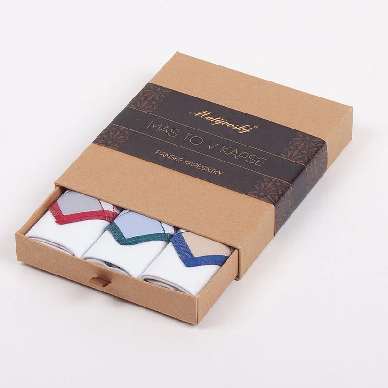 Elegance dotažená do posledního detailu. Tradiční bavlněný kapesník je nejen praktickým pomocníkem v celé řadě každodenních okamžiků, ale také symbolem elegance a vytříbeného stylu. Sada tří barevně sladěných látkových kapesníků, které vynikají hebkostí a savostí, se i díky originálnímu balení stane ideálním dárkem pro moderního gentlemana.
