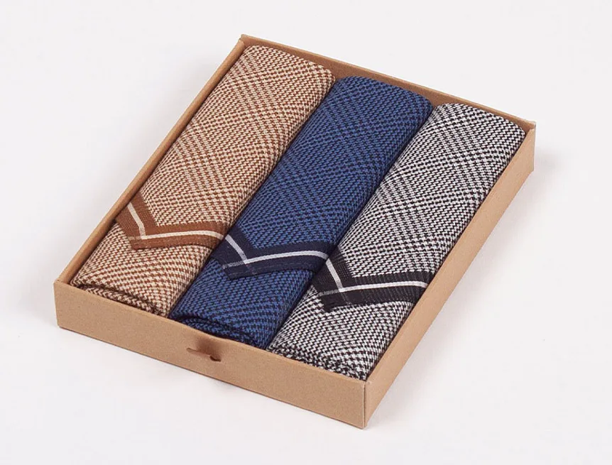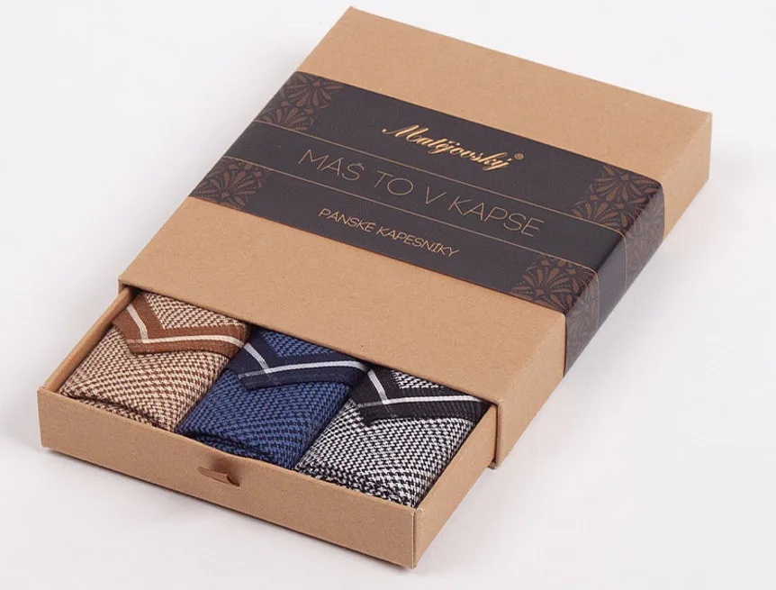 Elegance dotažená do posledního detailu. Tradiční bavlněný kapesník je nejen praktickým pomocníkem v celé řadě každodenních okamžiků, ale také symbolem elegance a vytříbeného stylu. Sada tří barevně sladěných látkových kapesníků, které vynikají hebkostí a savostí, se i díky originálnímu balení stane ideálním dárkem pro moderního gentlemana.