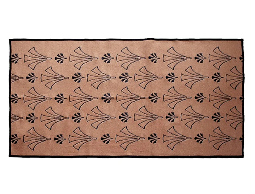 Dekorační tkaný kobereček s krásnou texturou je novinkou v sortimentu a doplňuje designové řady nejoblíbenějších geometrických motivů. Nyní si můžete sladit interiér opravdu do posledního detailu. Dezén CORDONA na první pohled zaujme elegantním motivem ve zlatavém a temně modrém odstínu, které dokonale kontrastují a vytvářejí tak jedinečný celek. Druhá strana koberečku je provedena inverzně (viz další foto). Kobereček je po celém obvodu olemován barevně sladěnou lemovkou.