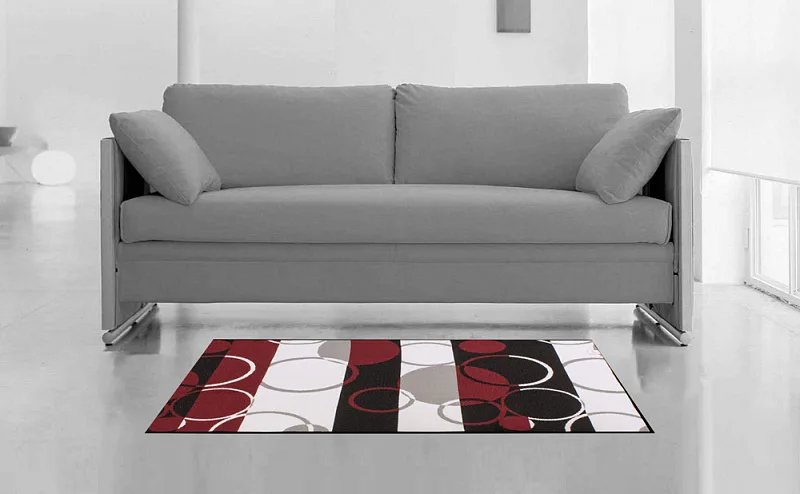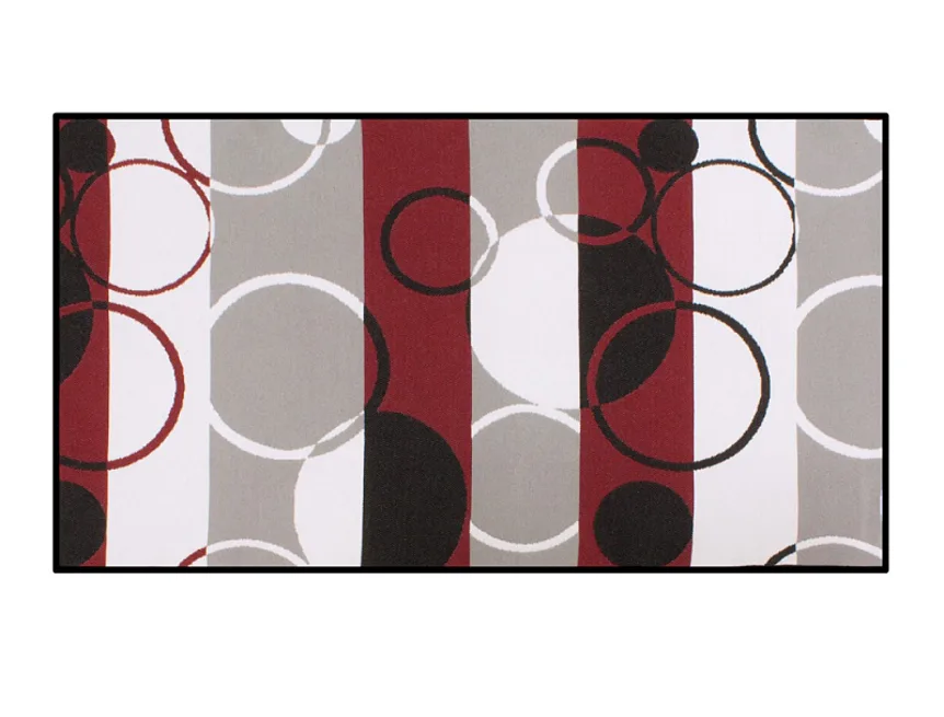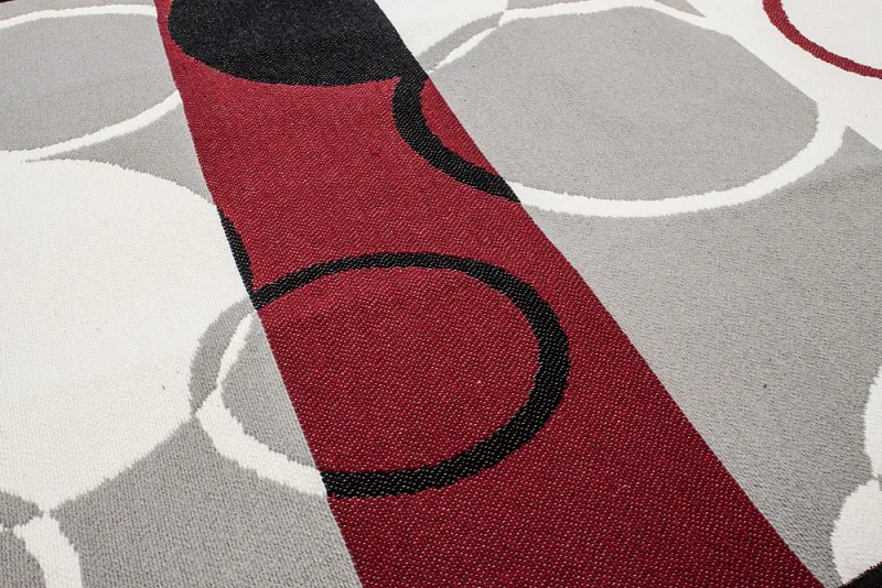 Dekorační tkaný kobereček s krásnou texturou skvěle doplní váš interiér. Dezén Flamengo na první pohled zaujme výrazným geometrickým vzorem v kontrastních odstínech černé, červené, šedé a bílé barvy. Druhá strana koberečku je provedena inverzně (viz další foto). Kobereček je po celém obvodu olemován barevně sladěnou lemovkou.
