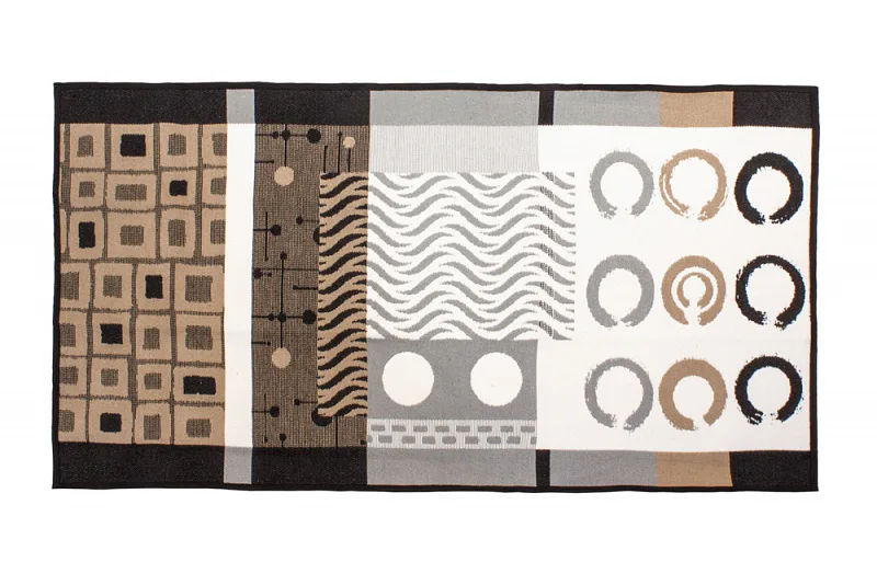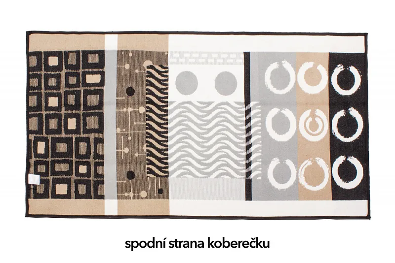 Dekorační tkaný kobereček s krásnou texturou je novinkou v sortimentu a doplňuje designové řady nejoblíbenějších geometrických motivů. Nyní si můžete sladit interiér opravdu do posledního detailu. Dezén NOMINE na první pohled zaujme atraktivním vzorem v odstínech černé, hnědé a šedé na přírodním bílém podkladu. Druhá strana koberečku je provedena inverzně (viz další foto). Kobereček je po celém obvodu olemován barevně sladěnou lemovkou.