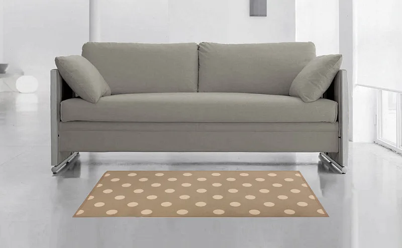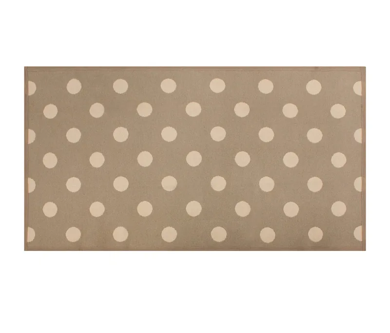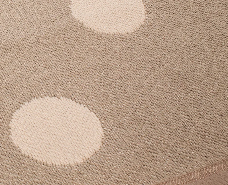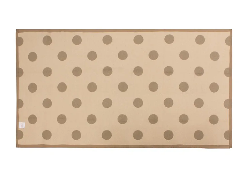 Dekorační tkaný kobereček s krásnou texturou je novinkou v sortimentu a doplňuje designové řady nejoblíbenějších geometrických motivů. Nyní si můžete sladit interiér opravdu do posledního detailu. Dezén PONTE na první pohled zaujme hravým puntíkovým vzorem v hnědobéžovém provedení. Druhá strana koberečku je provedena inverzně (viz další foto). Kobereček je po celém obvodu olemován barevně sladěnou lemovkou.