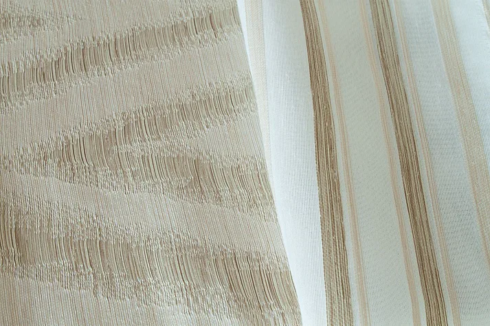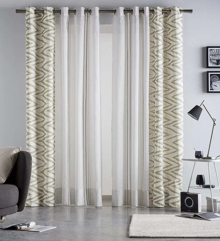 Limitovaná kolekce kombinovaných dekoračních závěsů přináší mimořádný designový kousek. Dodejte interiéru styl okouzlujícím závěsem ANABEL SAND. Dokonale sladěné odstíny zlatavé a krémové barvy na částečně zatemňující designové části se skvěle doplňují s průhledným bílým tylem zdobeným svislými zlatavými proužky. Obě části na sebe plynule navazují a tvoří tak originální celek. Jemný matný lesk dodává kombinovanému závěsu nadčasovou eleganci.