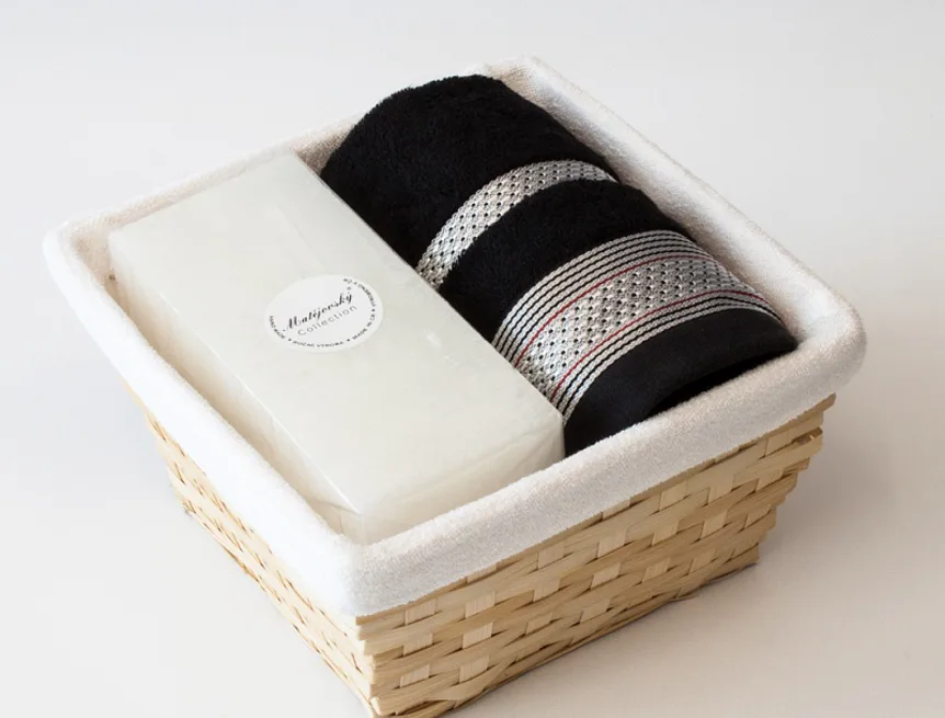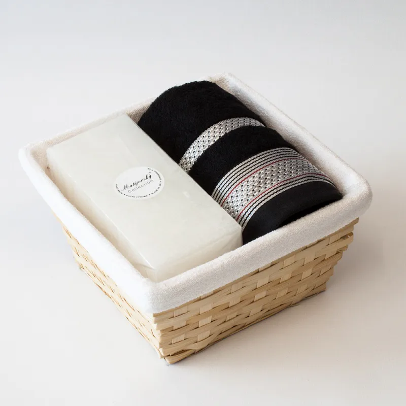 Proutěný košík a bílá textilní vsadka jsou součástí dárkového balení.