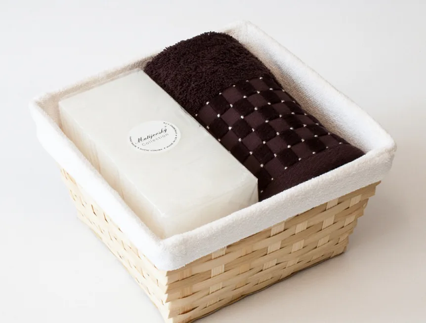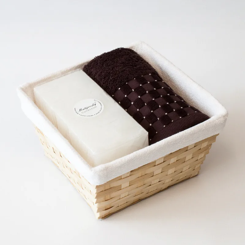 Proutěný košík a bílá textilní vsadka jsou součástí dárkového balení.