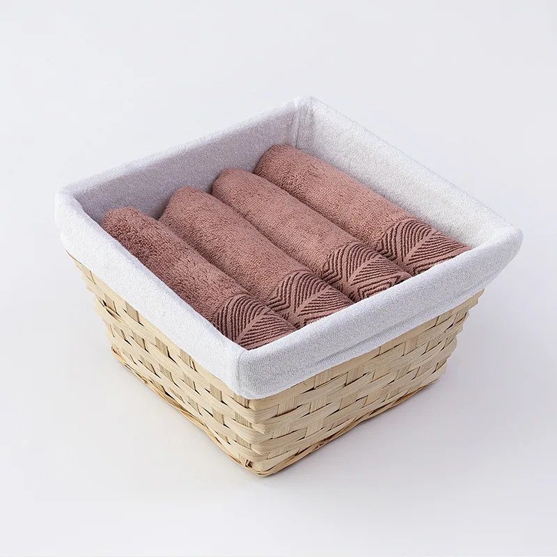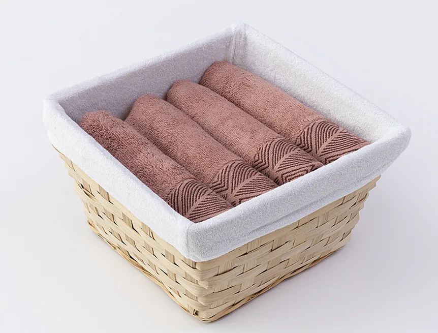 Košík s textilní vsadkou je součástí balení. Ručníky jsou opatřeny poutkem.