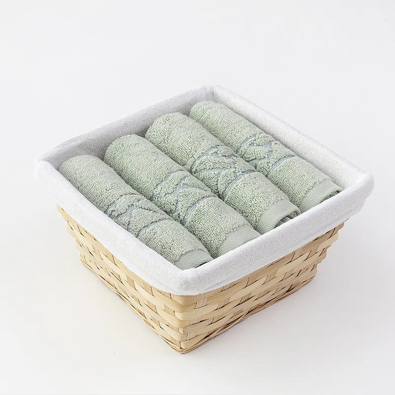 Košík s textilní vsadkou je součástí balení. Ručníky jsou opatřeny poutkem.