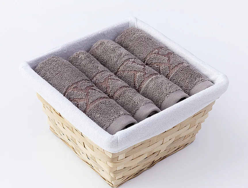 Košík s textilní vsadkou je součástí balení. Ručníky jsou opatřeny poutkem.