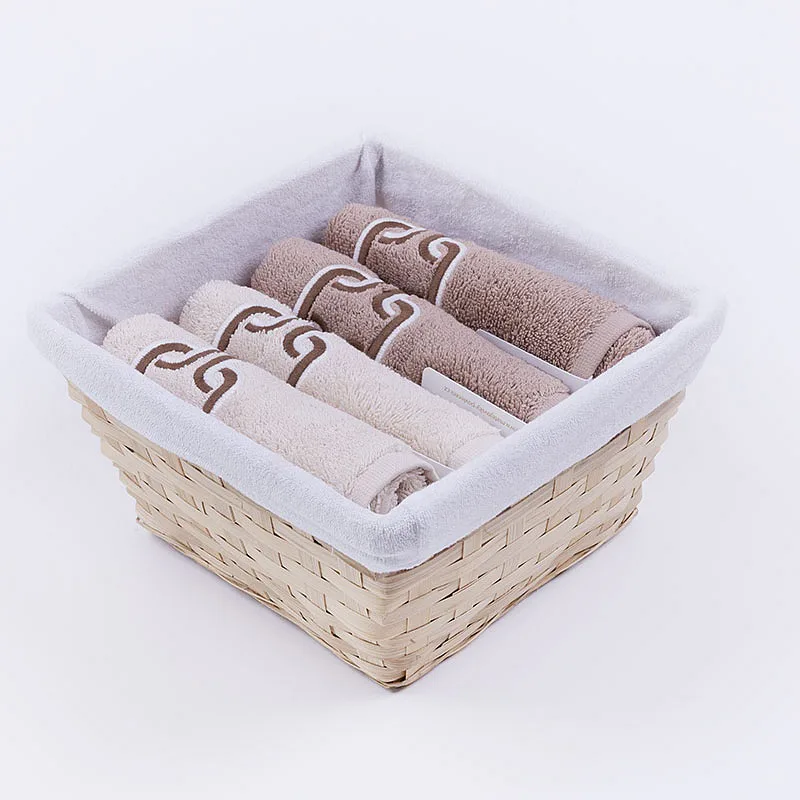 Košík s textilní vsadkou je součástí balení. Ručníky jsou opatřeny poutkem.