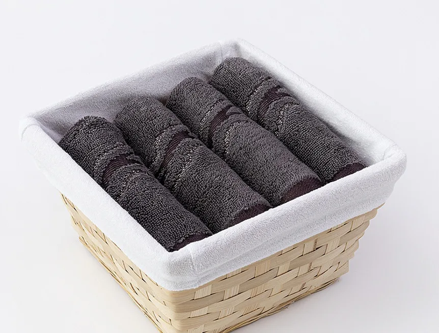 Košík s textilní vsadkou je součástí balení. Ručníky jsou opatřeny poutkem.