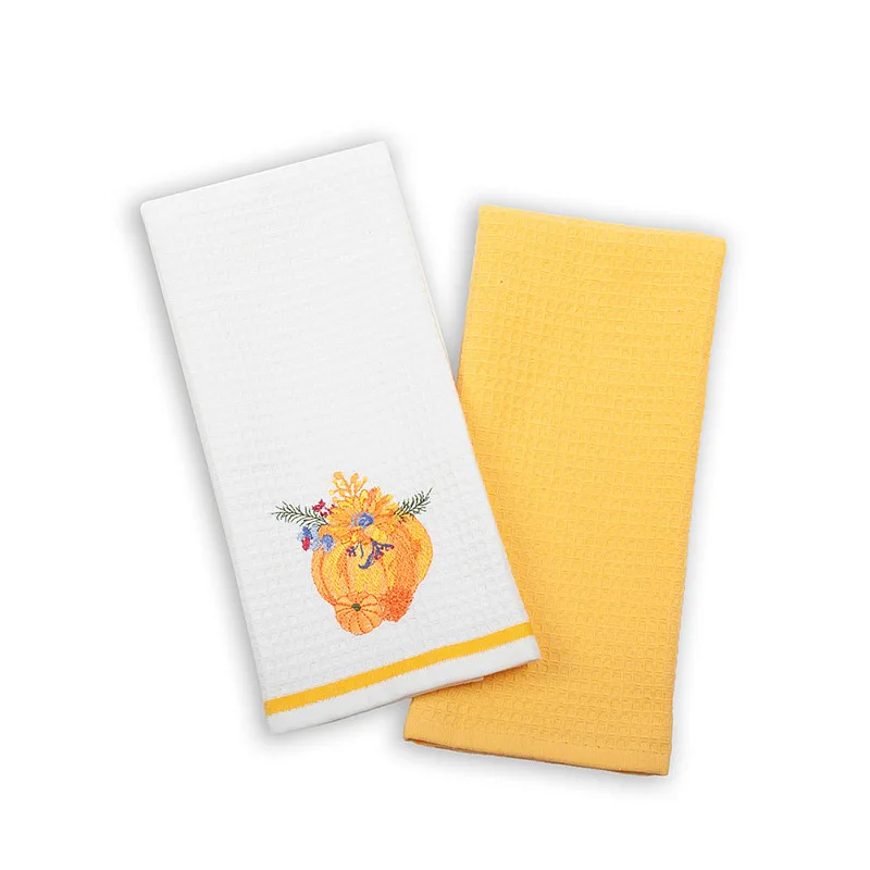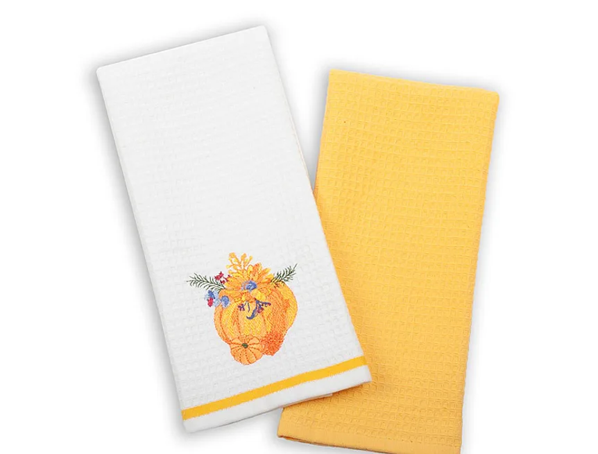 1x bílá utěrka s výšivkou a žlutou bordurou