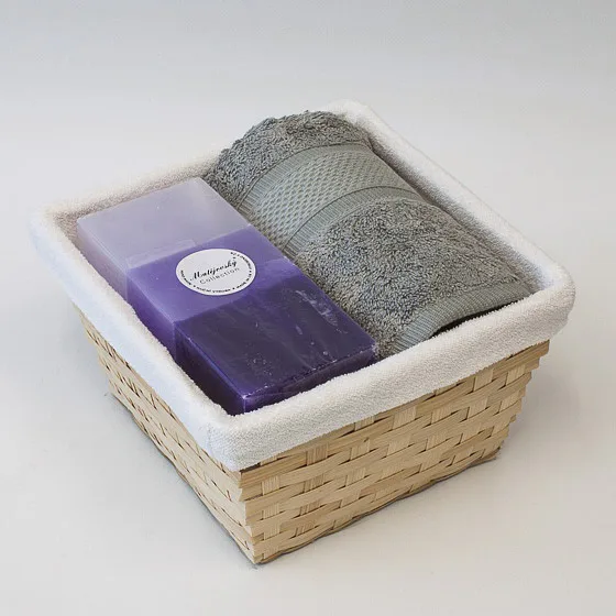 Proutěný košík a bílá textilní vsadka jsou součástí dárkového balení.