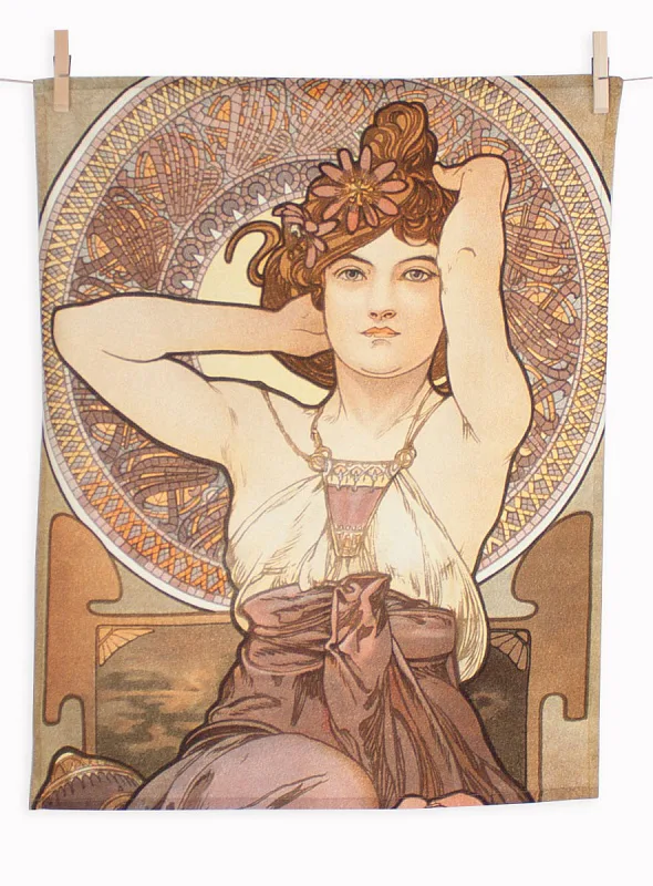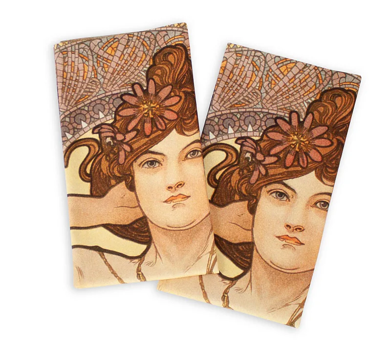 Kolekce bavlněných kuchyňských utěrek s kresbami Alfonse Muchy vnese do vaší kuchyně jediněčnou atmosféru. Nejmodernější digitální tisková technologie zajišťuje zářivé barvy a precizní detaily.