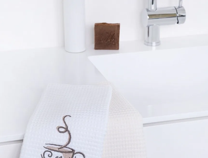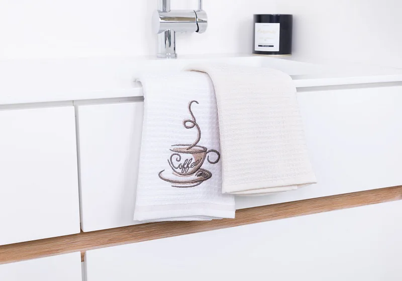 - 1x bílá utěrka s výšivkou a krémovou bordurou