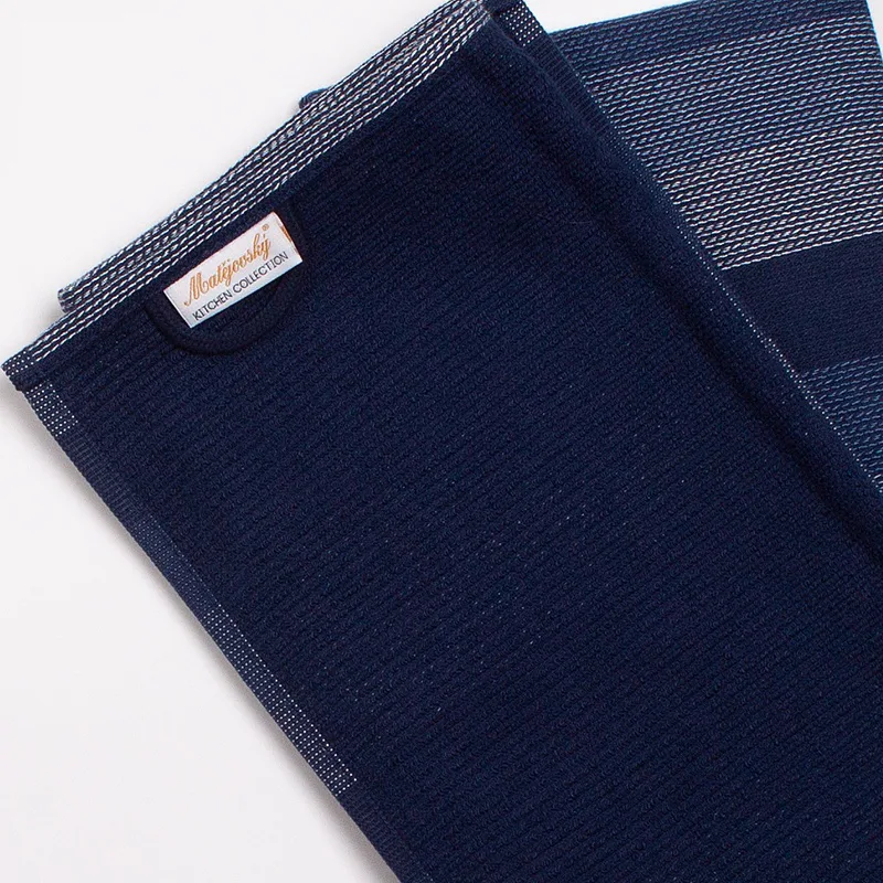 Kuchyňské utěrky Colin vynikají svým praktickým provedením a nadčasovým designem. Vrchní strana utěrky je hladká s jemnou vlnkovou strukturou, spodní stranu tvoří hebké jednobarevné froté. Utěrky mají všechny čtyři strany lemované a jsou opatřeny praktickým poutkem pro zavěšení.