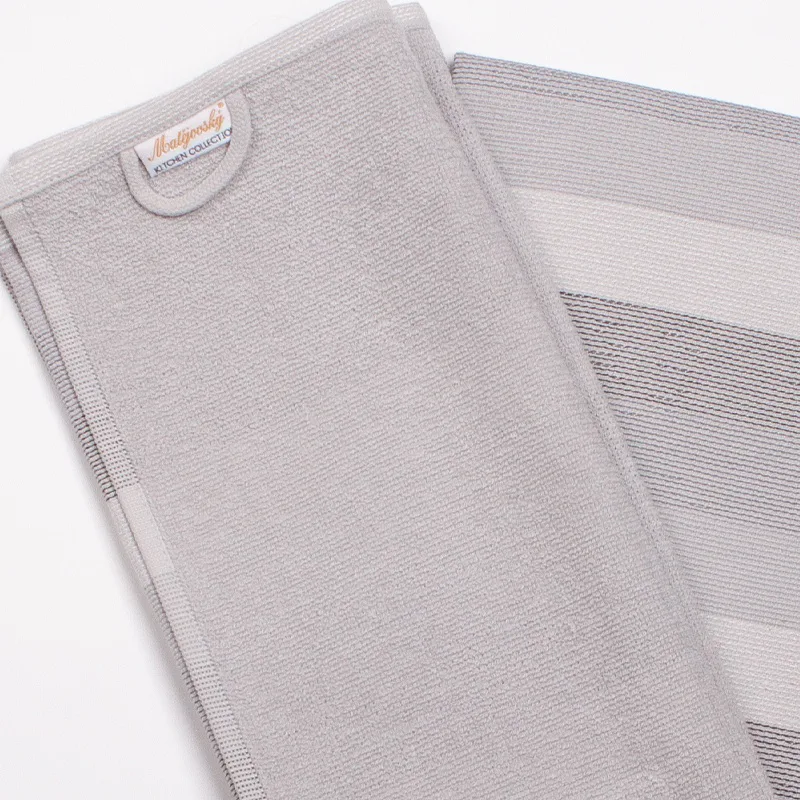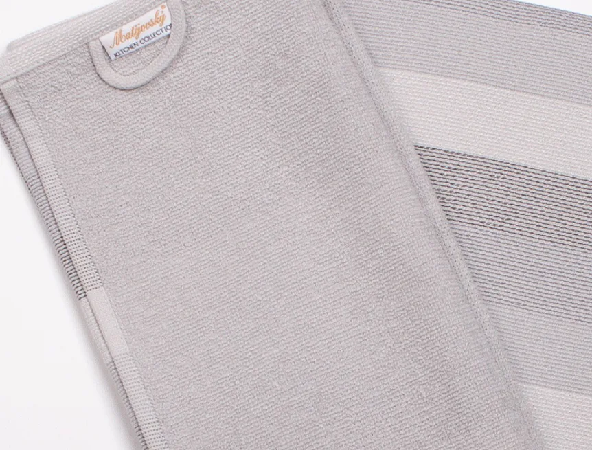Kuchyňské utěrky Colin vynikají svým praktickým provedením a nadčasovým designem. Vrchní strana utěrky je hladká s jemnou vlnkovou strukturou, spodní stranu tvoří hebké jednobarevné froté. Utěrky mají všechny čtyři strany lemované a jsou opatřeny praktickým poutkem pro zavěšení.