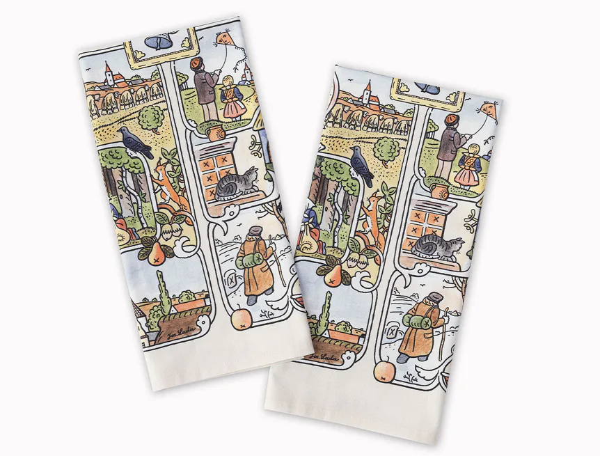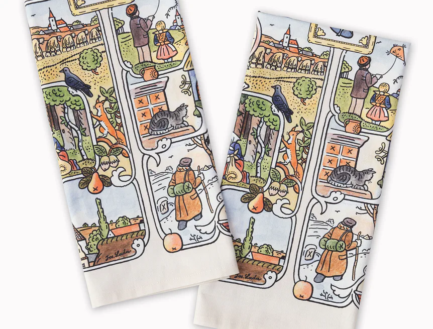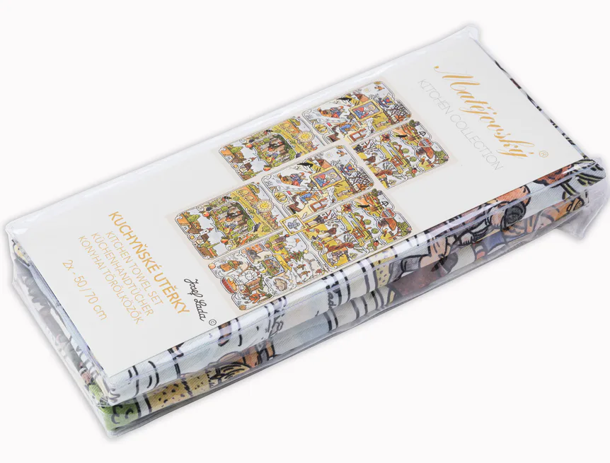 Kolekce bavlněných kuchyňských utěrek s kresbami Josefa Lady vnese do vaší kuchyně jedinečnou atmosféru.