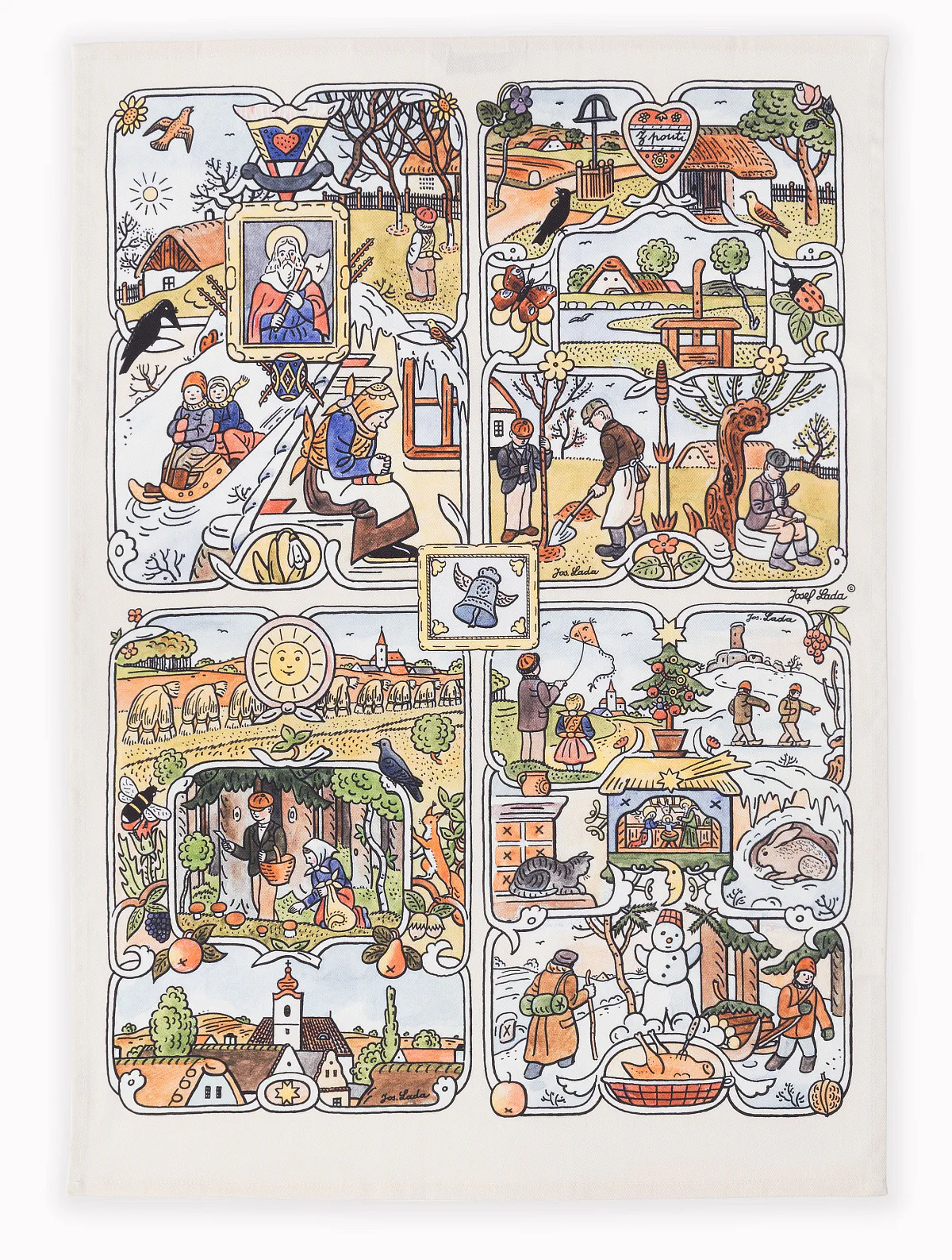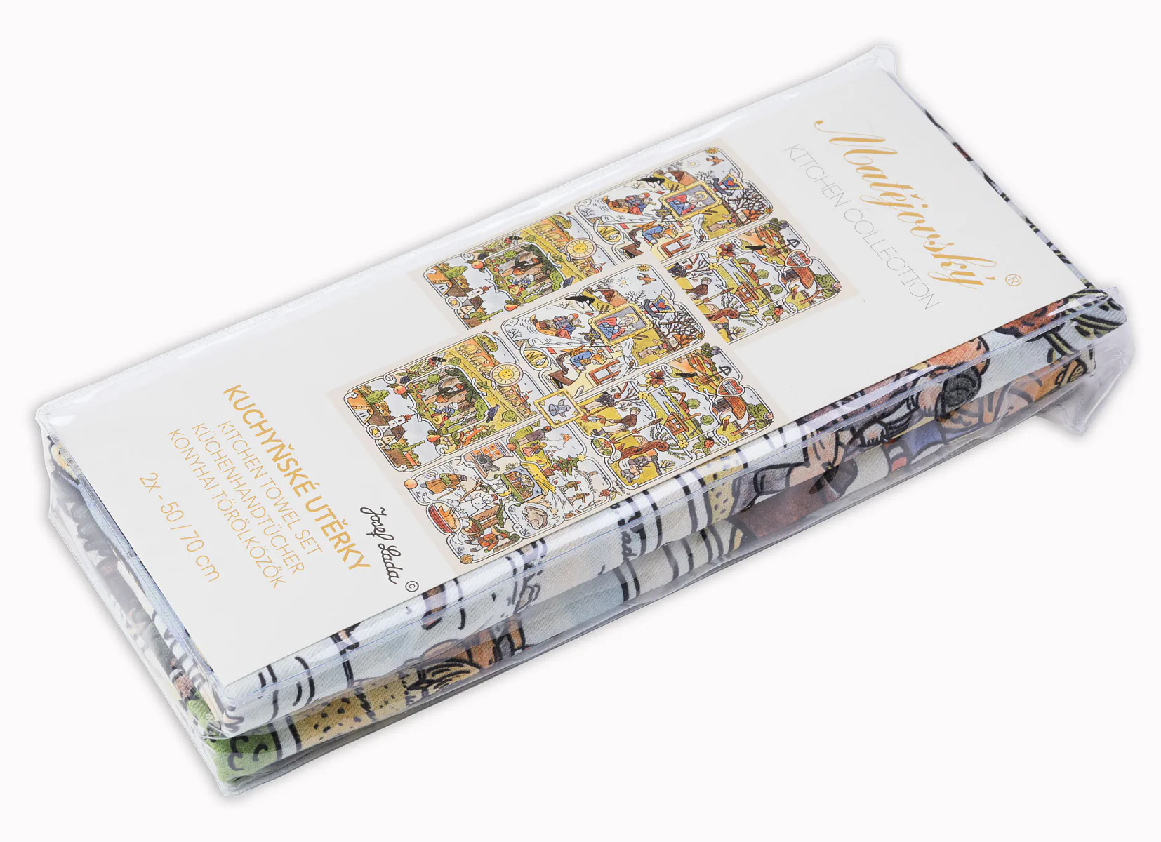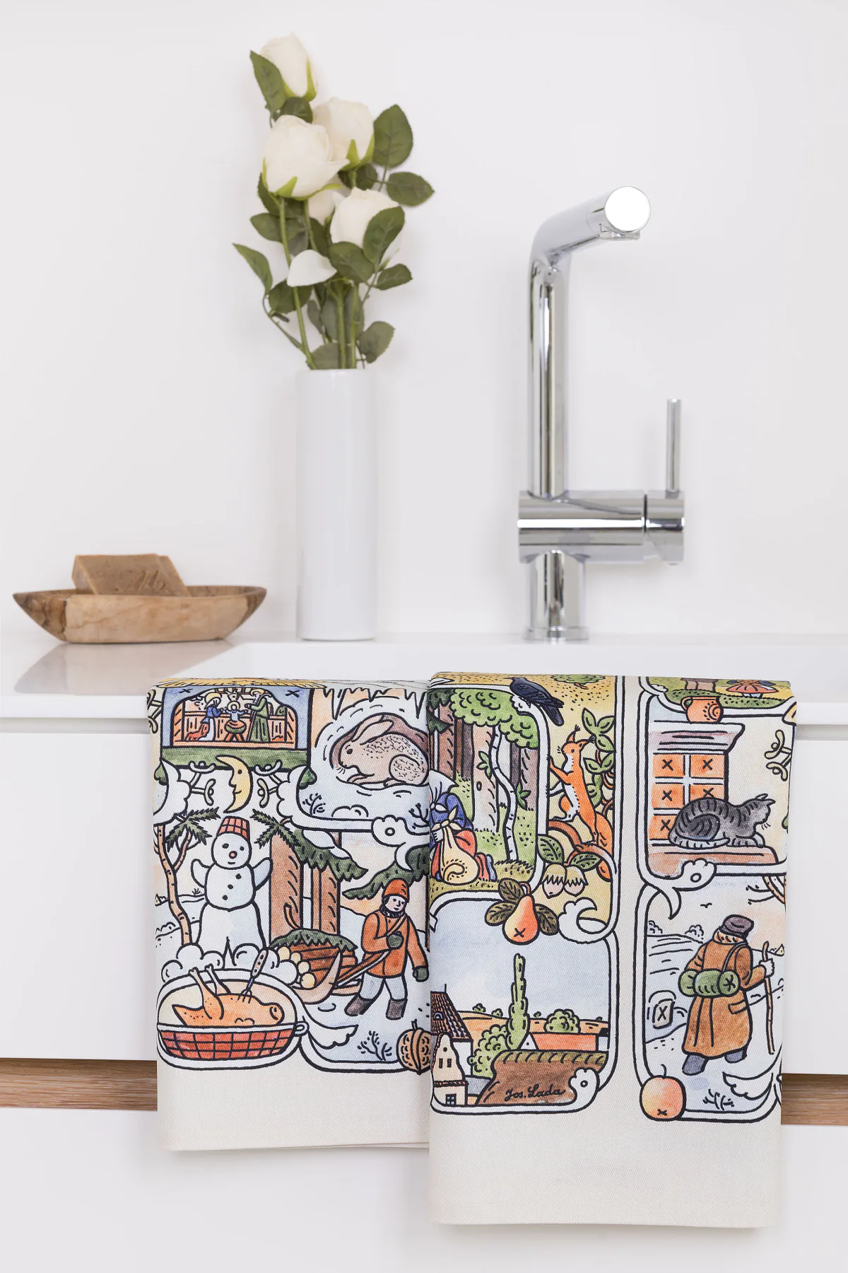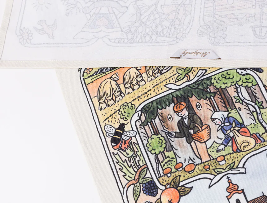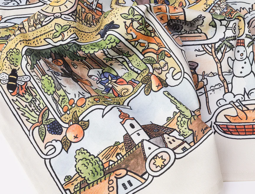 Kuchyňské utěrky Čtyři roční období se díky nejmodernější digitální tiskové technologii pyšní nádhernými barvami a precizními detaily, které vykreslují autentickou ladovskou poetiku.