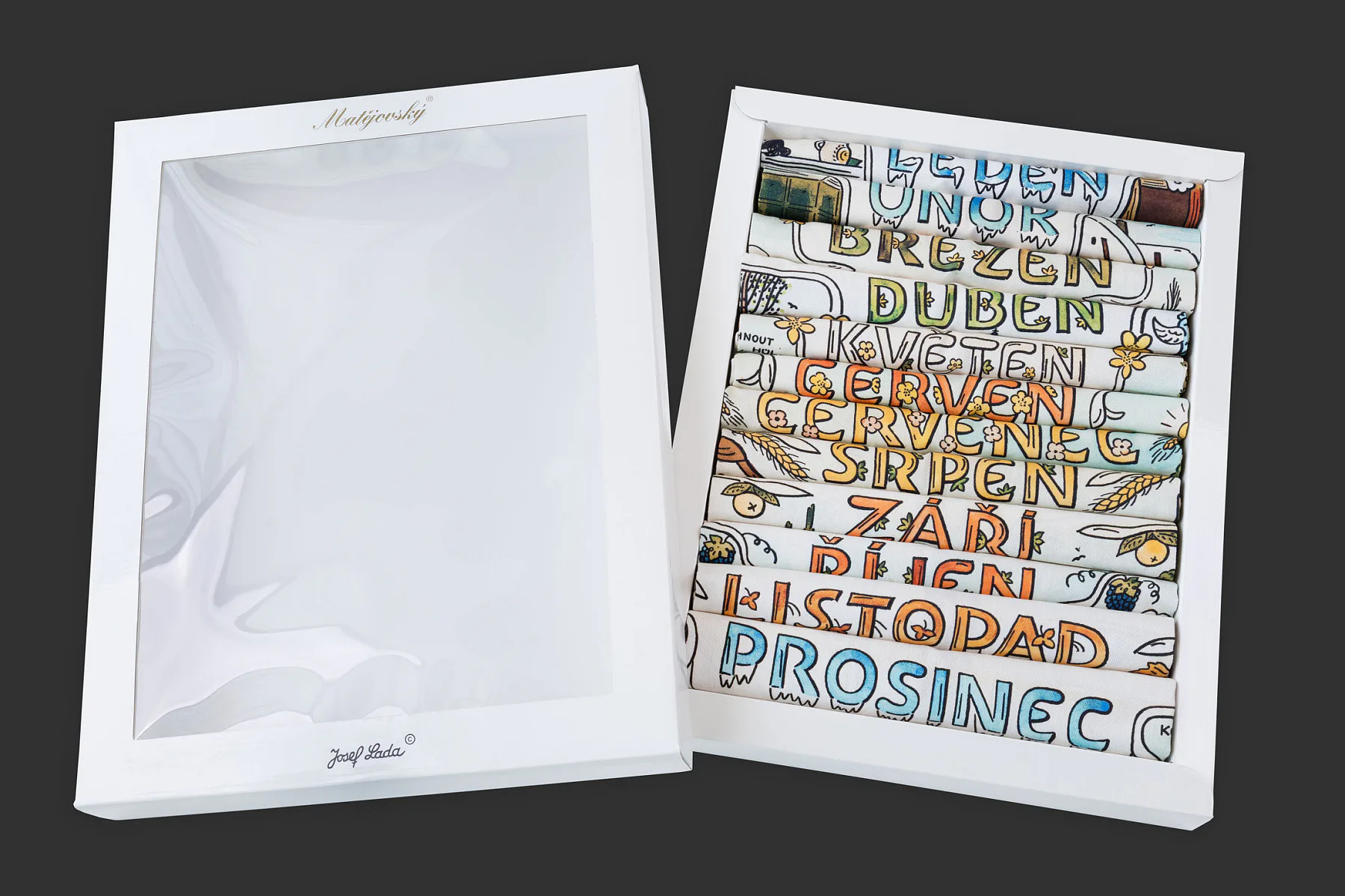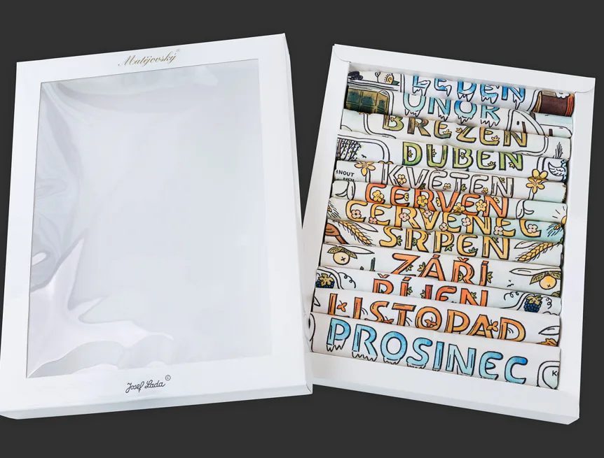 Obsah balení: 12x utěrka s motivy všech měsíců v roce v luxusní dárkové krabici