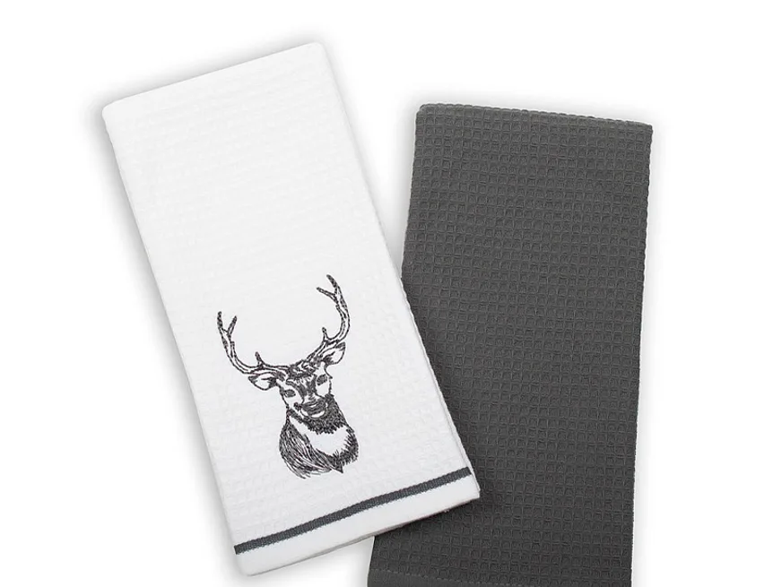 - 1x bílá utěrka s výšivkou a antracitově šedou bordurou