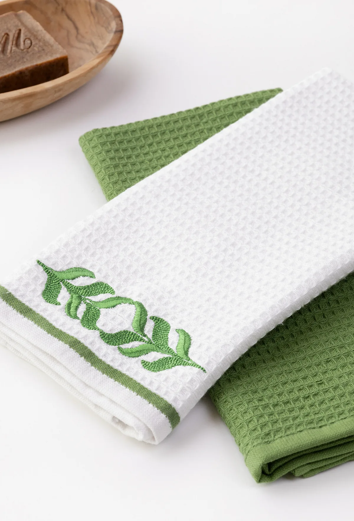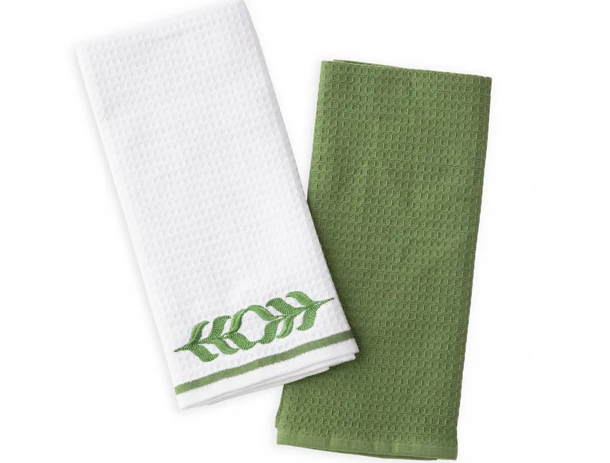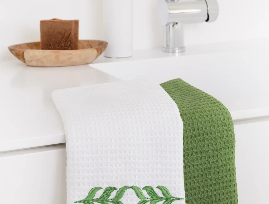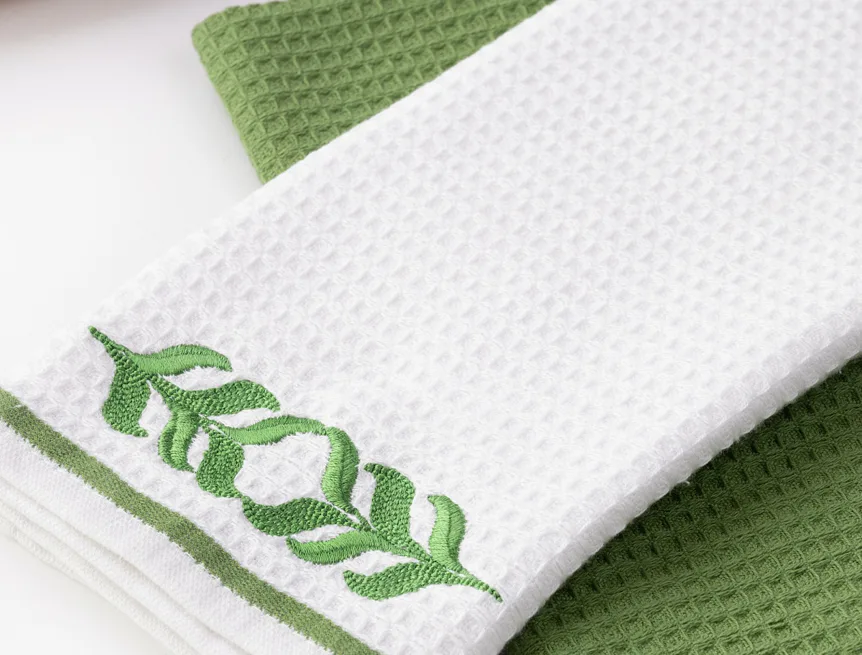 Atraktivní a precizně provedené lesklé výšivky se skvěle doplňují s okouzlujícími barevnými odstíny napříč celou kolekcí vaflových utěrek.