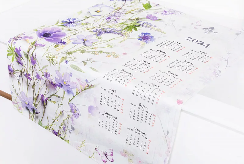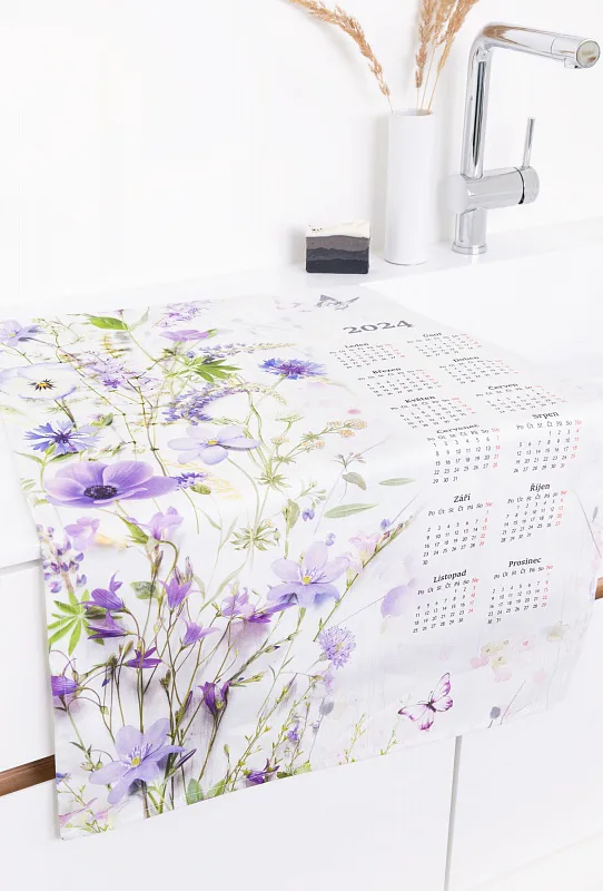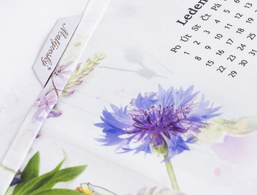 Bavlněný Kalendář Bluebell s okouzlujícím motivem lučního kvítí může být originální ozdobou i praktickým doplňkem vaší kuchyně, případně milým dárkem pro vaše blízké.