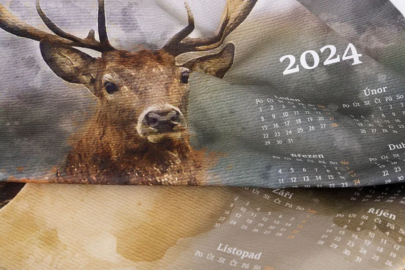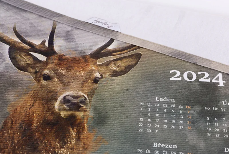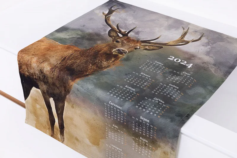 Bavlněný Kalendář Jelen s oblíbeným mysliveckým motivem může být originální ozdobou i praktickým doplňkem vaší kuchyně, případně milým dárkem pro vaše blízké.