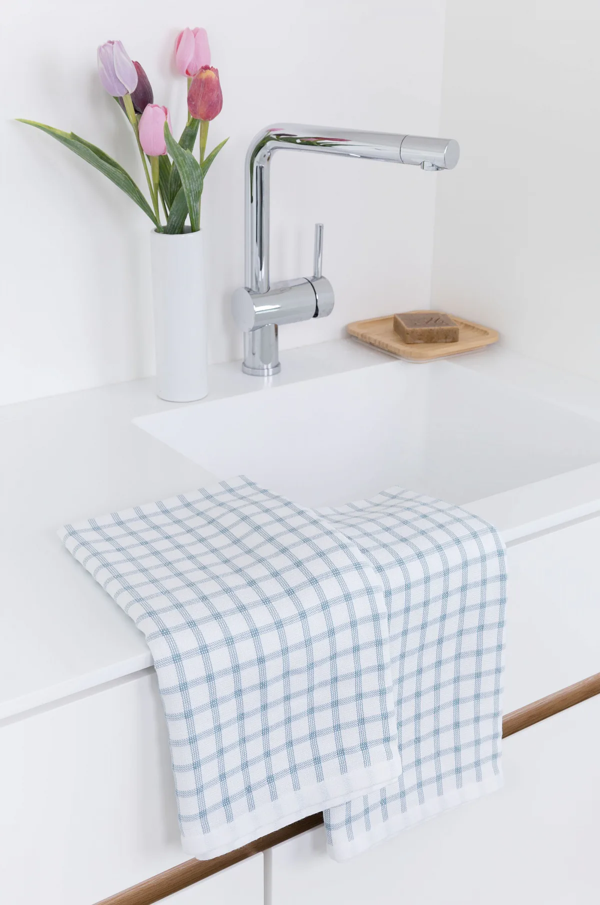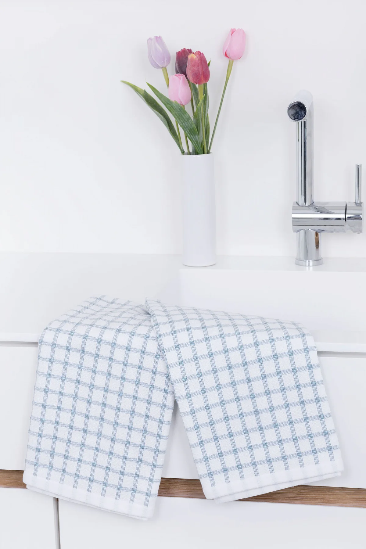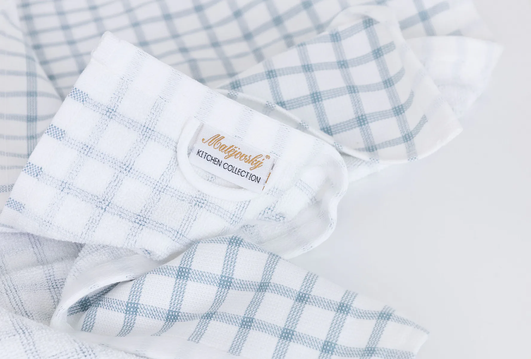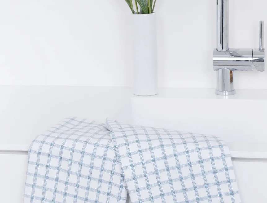 Kuchyňské utěrky Kostky vynikají svým praktickým provedením a nadčasovým designem. Vrchní strana utěrky je hladká s jednoduchým kostkovaným vzorem, spodní stranu tvoří hebké bílé froté s prosvítajícím motivem kostek z vrchní strany. Díky optimální gramáži utěrky výborně sají a velmi rychle schnou. Utěrky mají všechny čtyři strany lemované a jsou opatřeny praktickým poutkem.