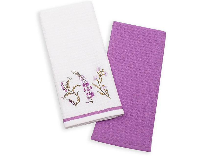 • 1x bílá utěrka s výšivkou a fialovou bordurou
