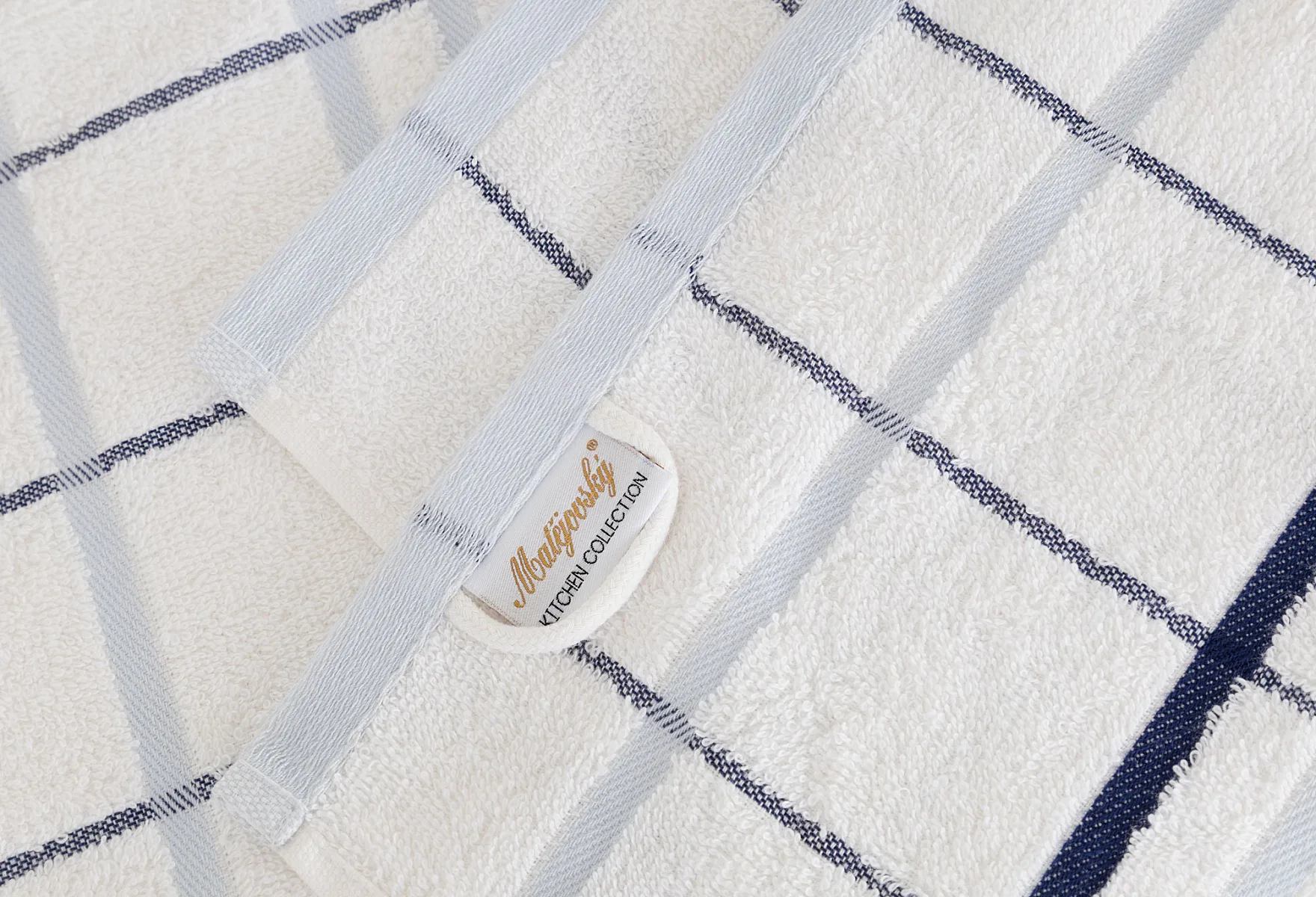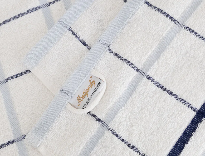 Kuchyňské utěrky Megan zdobí elegantní kostkovaný motiv v barevně sladěných tónéch, který je díky vetkané struktuře patrný z obou stran smyčkového froté. Utěrky jsou navrženy tak, aby měly ideální absorpční vlastnosti a současně rychle schly. Utěrky jsou ze všech čtyř stran lemované a jsou opatřeny praktickým poutkem.