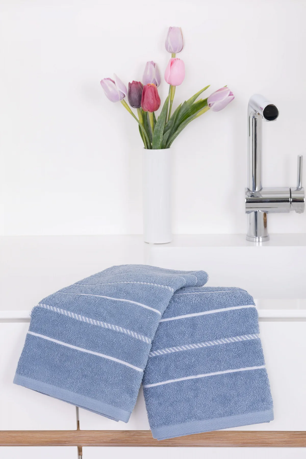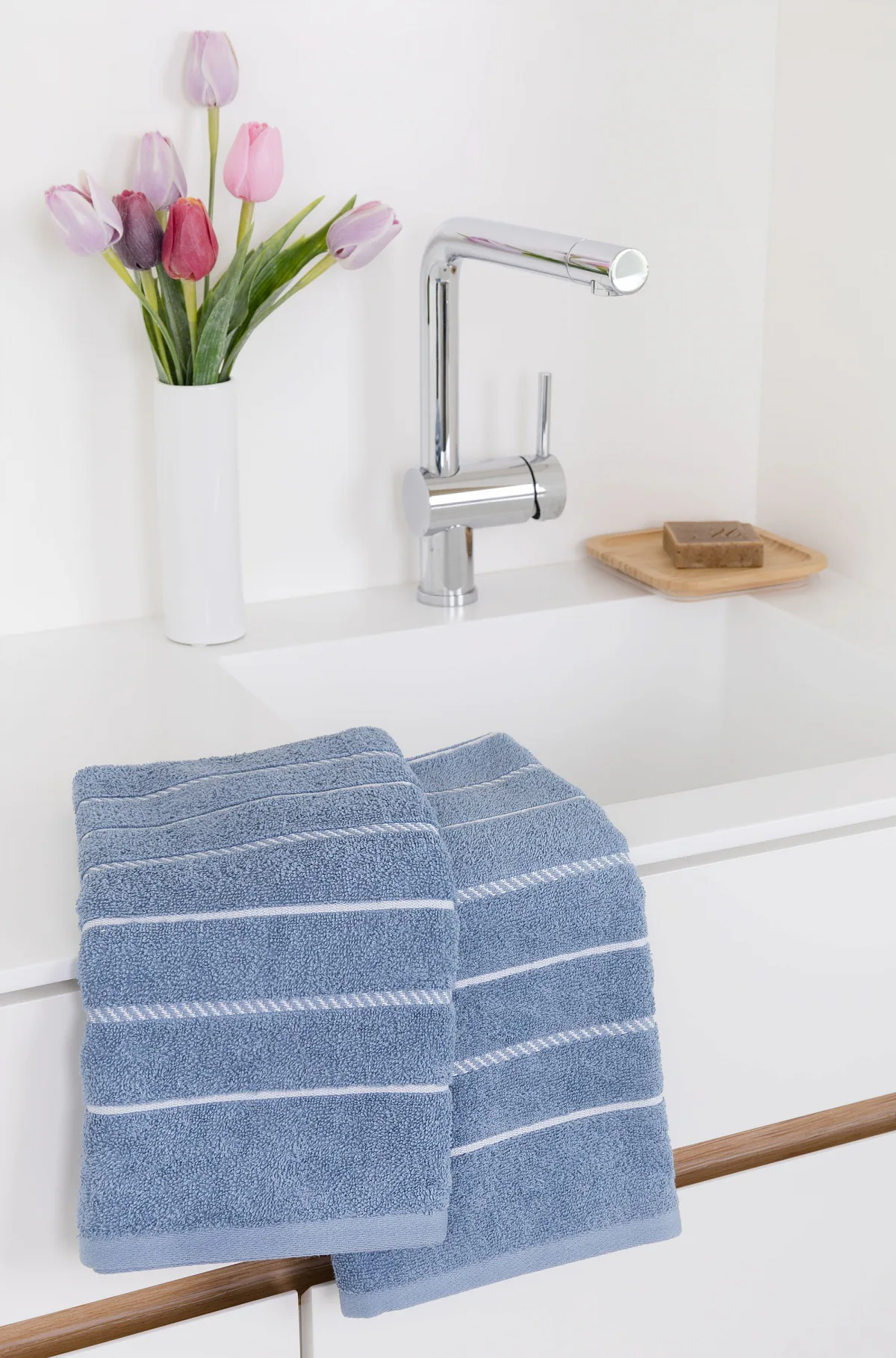 Kuchyňské utěrky Mona zdobí na vrchní straně smyčkového froté elegantní bílé proužky, na spodní straně utěrky jsou tyto proužky v barvě froté. Utěrky jsou navrženy tak, aby měly ideální absorpční vlastnosti a současně rychle schly. Utěrky jsou ze všech čtyř stran lemované a jsou opatřeny praktickým poutkem.