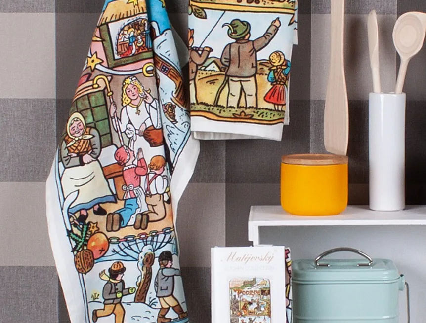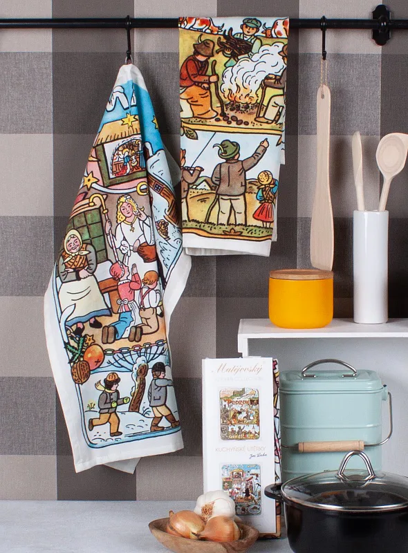 Kolekce bavlněných kuchyňských utěrek s kresbami Josefa Lady vnese do vaší kuchyně jediněčnou atmosféru.
