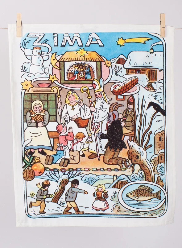 Kuchyňské utěrky Podzim & Zima se díky nejmodernější digitální tiskové technologii pyšní nádhernými barvami a precizními detaily, které vykreslují autentickou ladovskou poetiku.