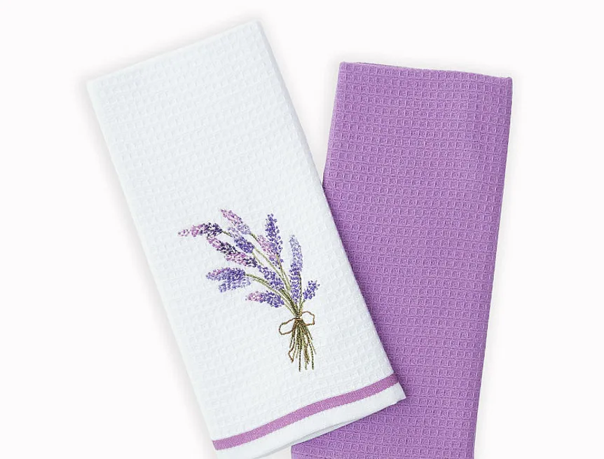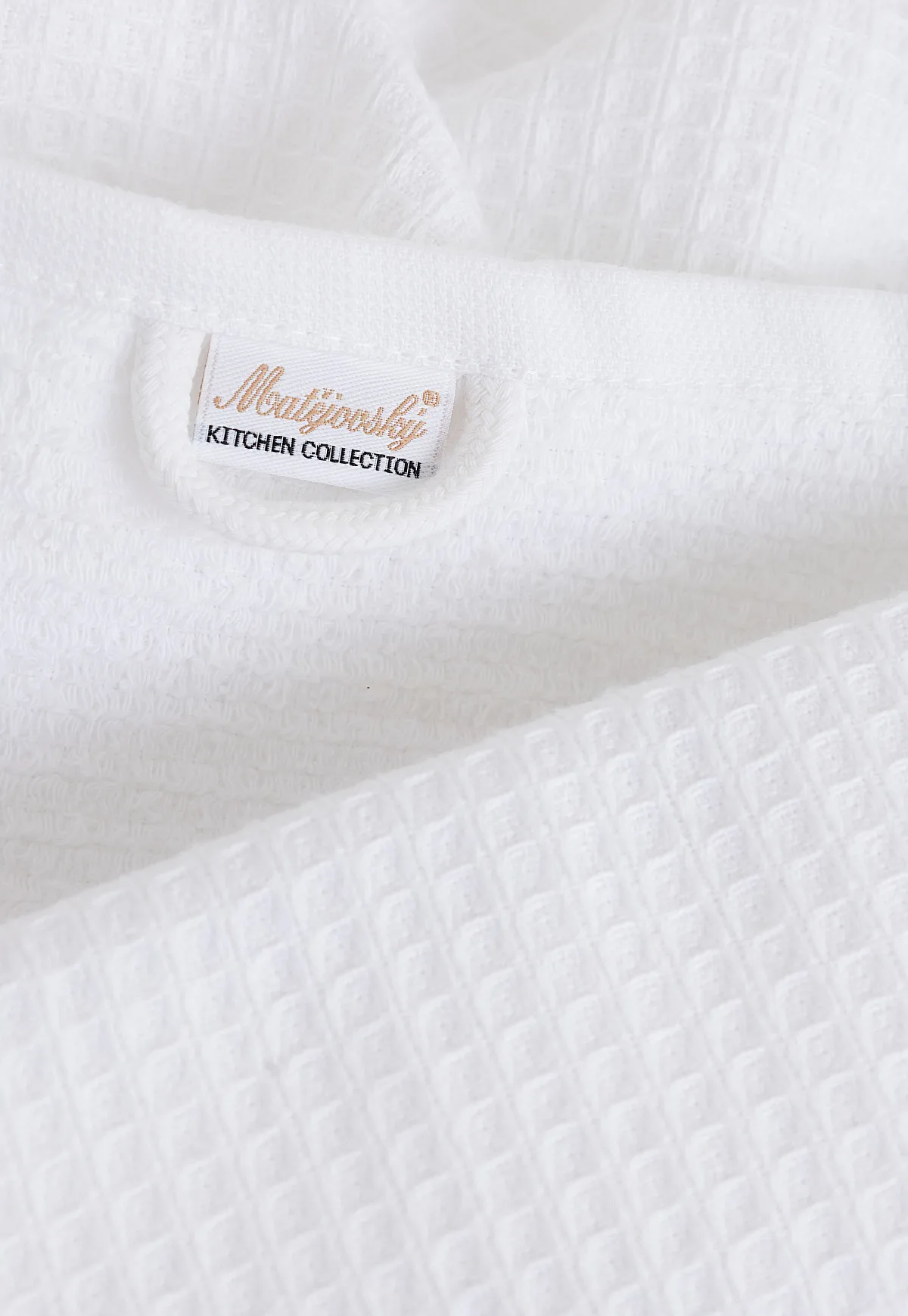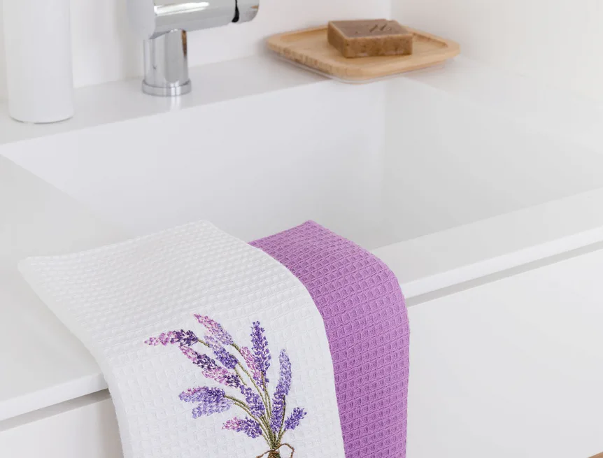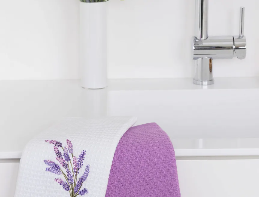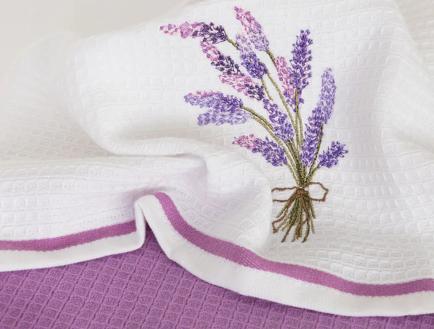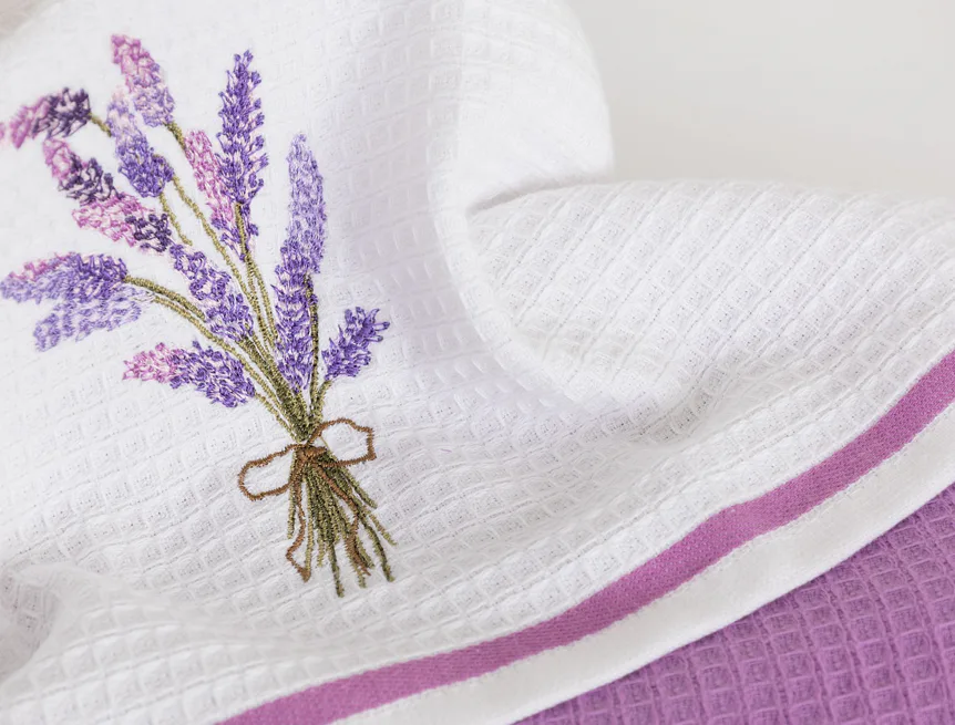 Atraktivní a precizně provedené lesklé výšivky se skvěle doplňují s okouzlujícími barevnými odstíny napříč celou kolekcí vaflových utěrek.