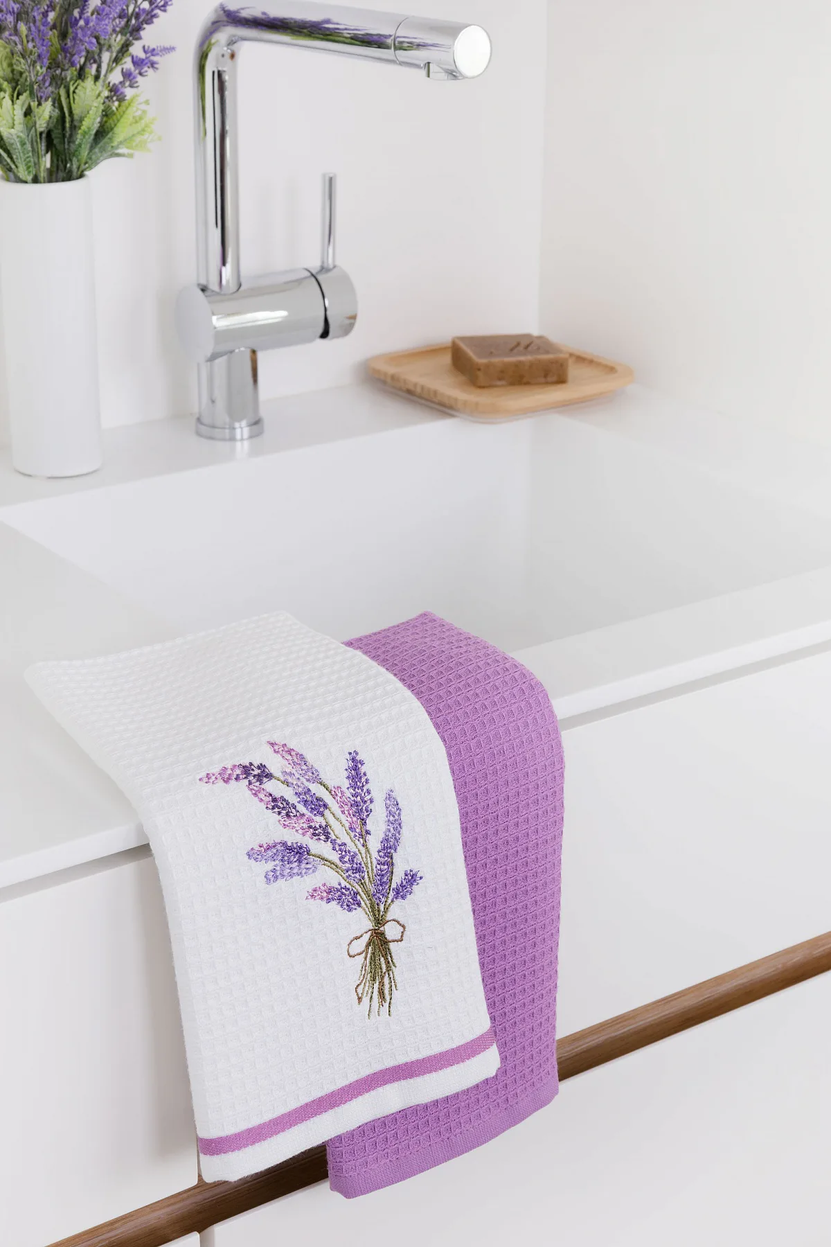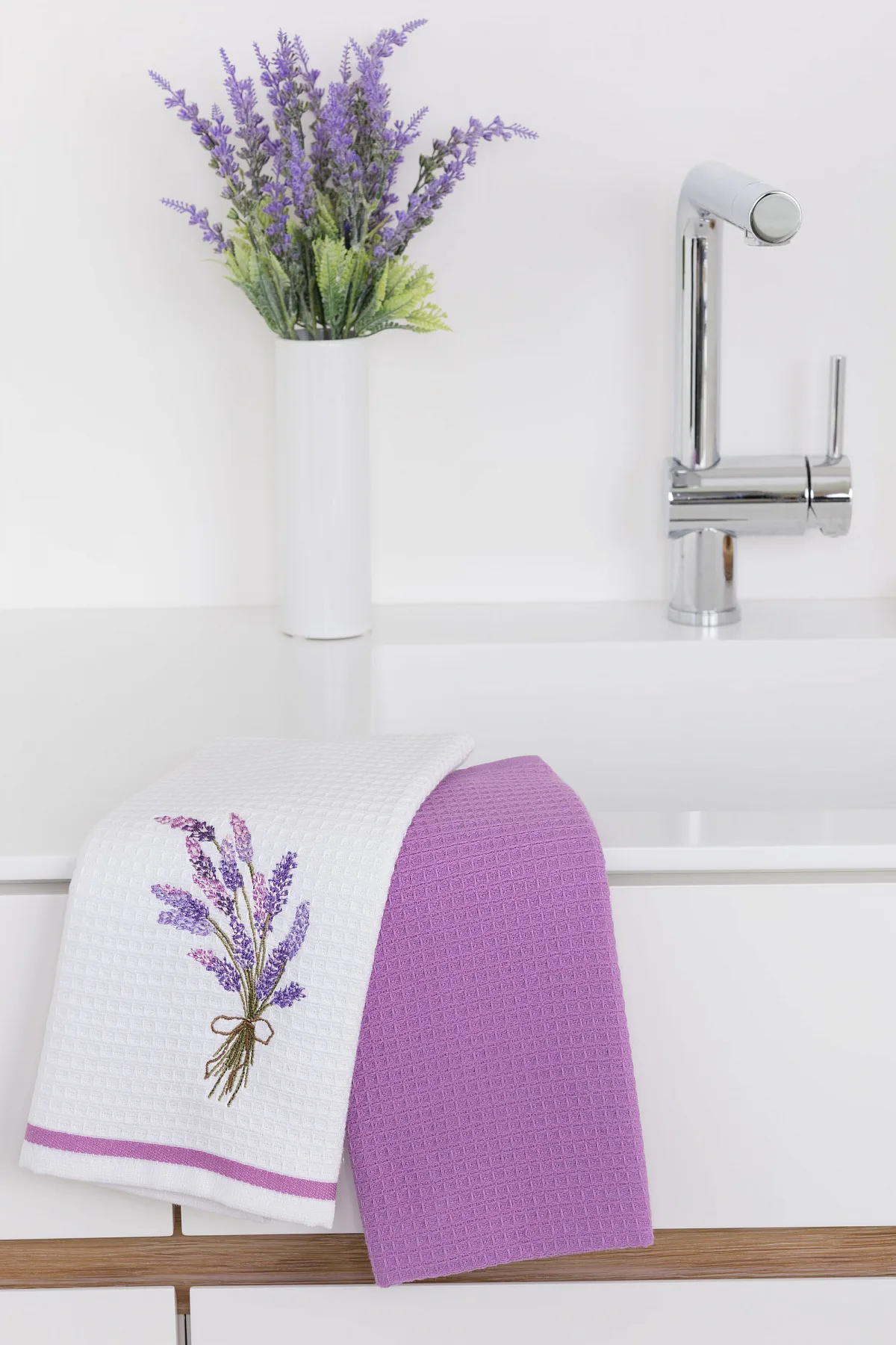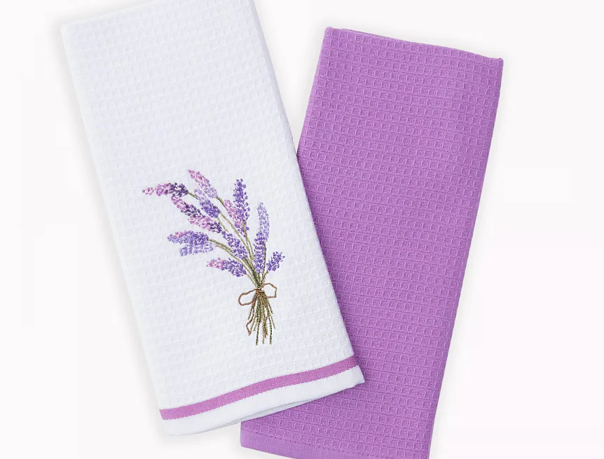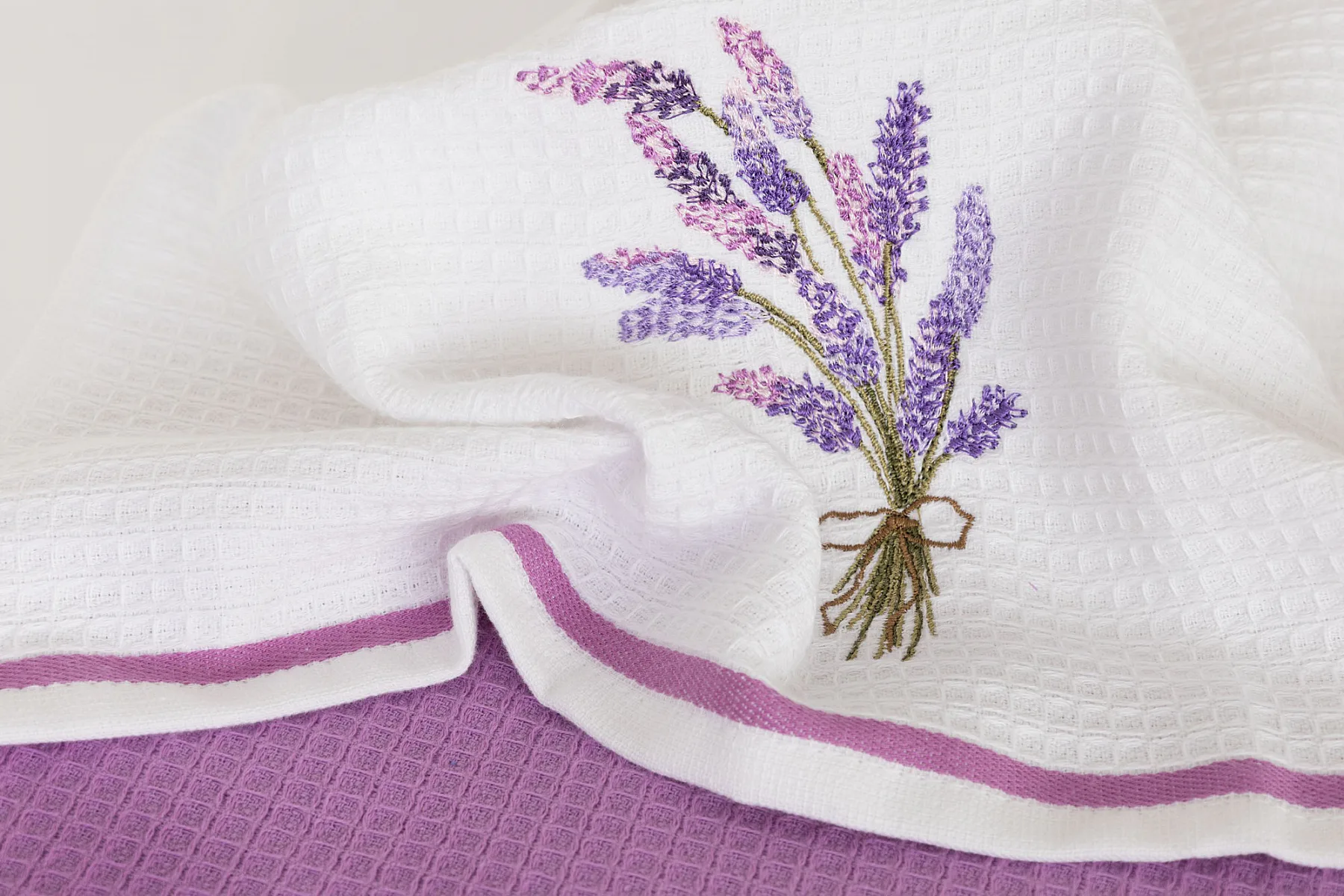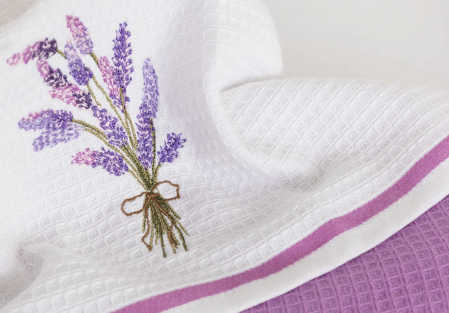 • 1x bílá utěrka s výšivkou a fialovou bordurou