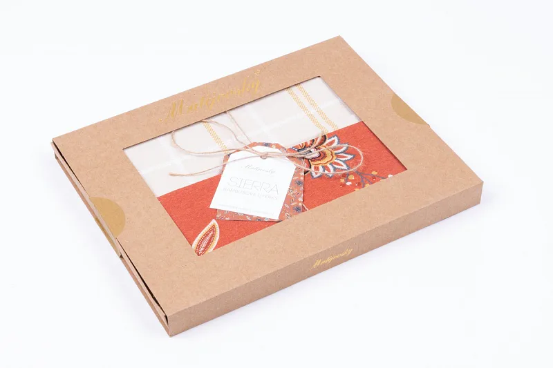 Dárkové balení obsahuje 2 kusy utěrek, praktické poutko pro zavěšení utěrek je samozřejmostí.
