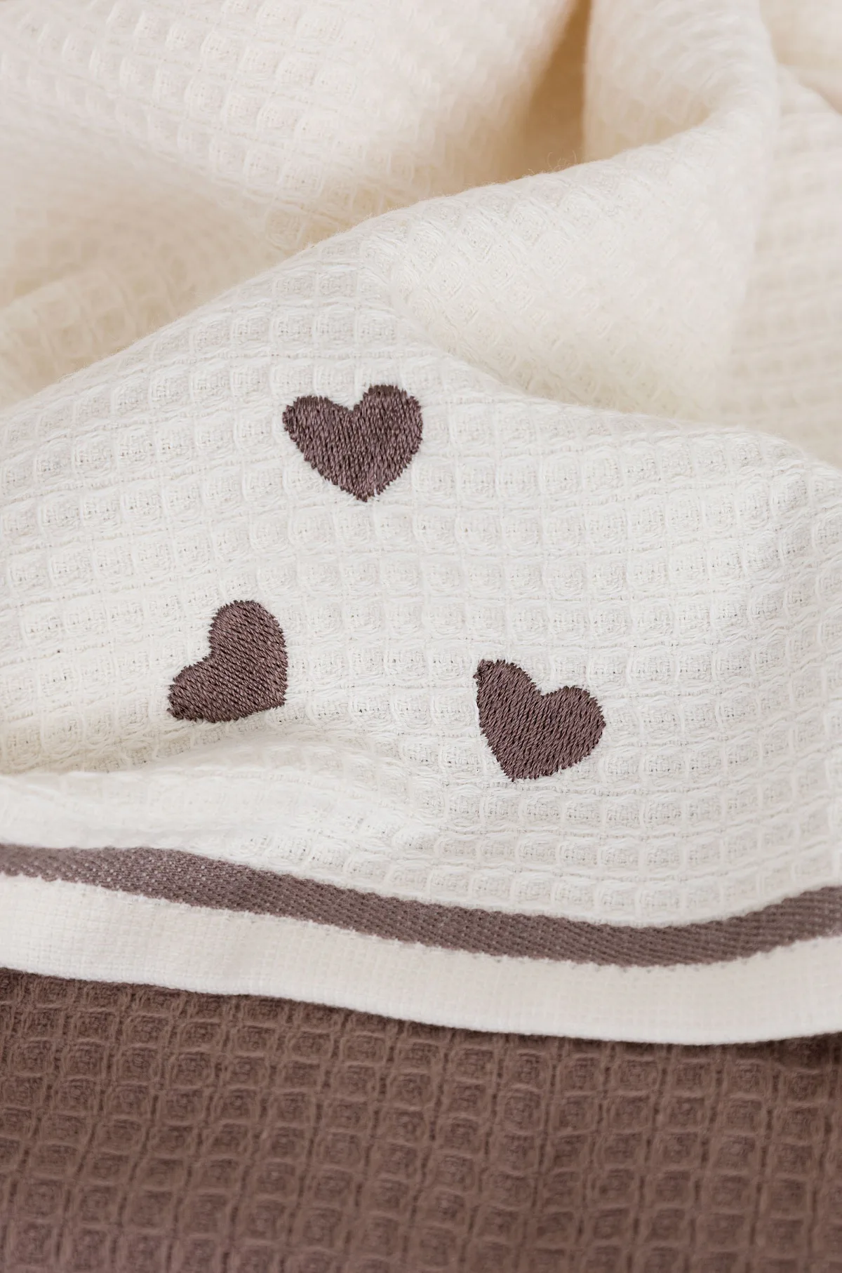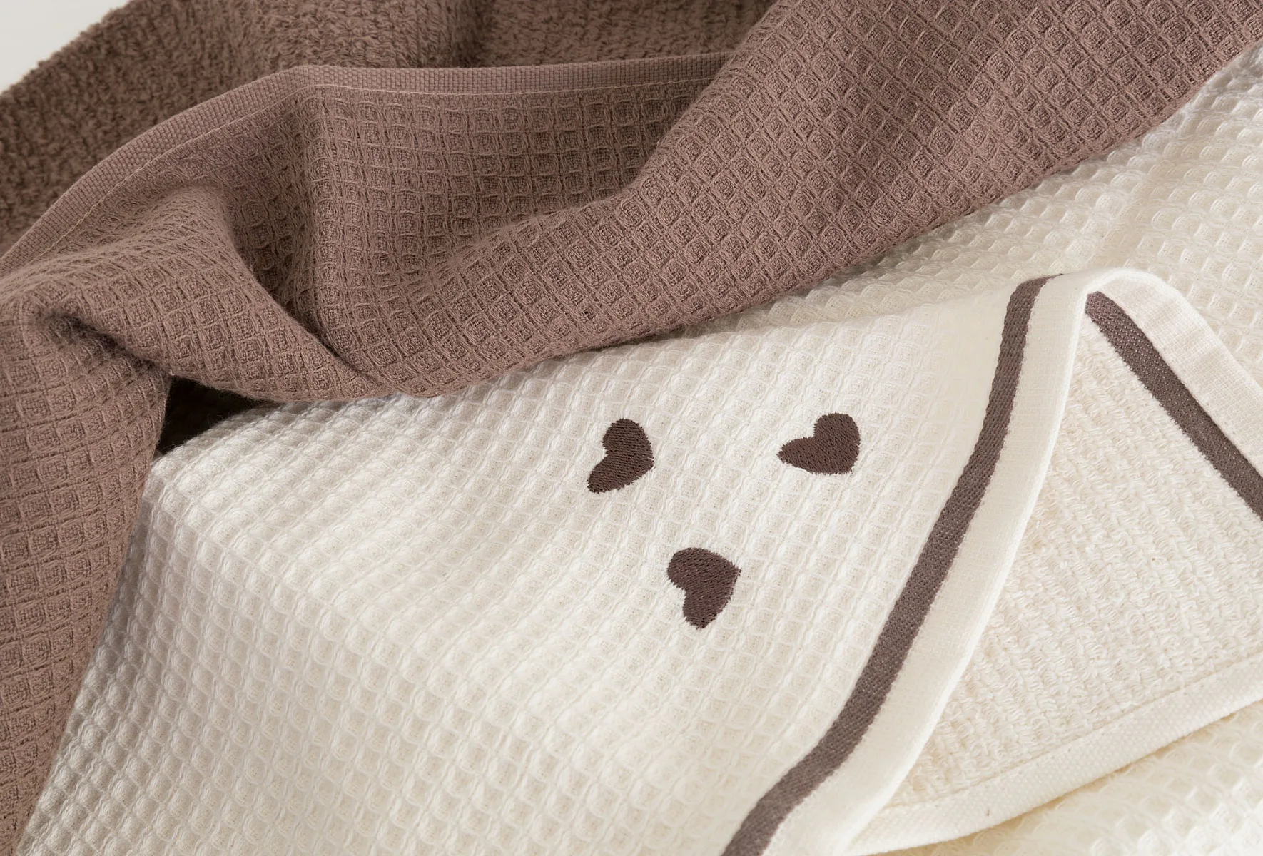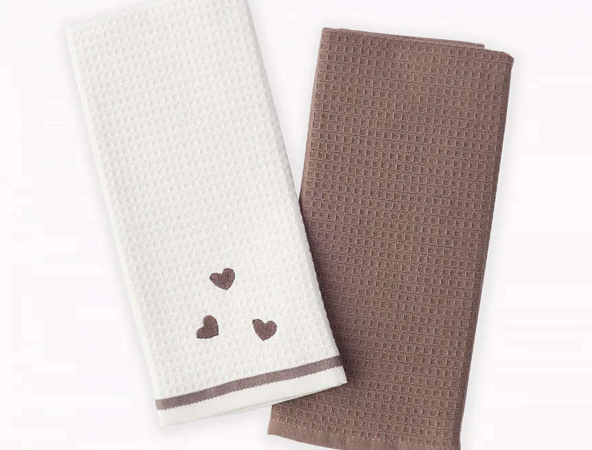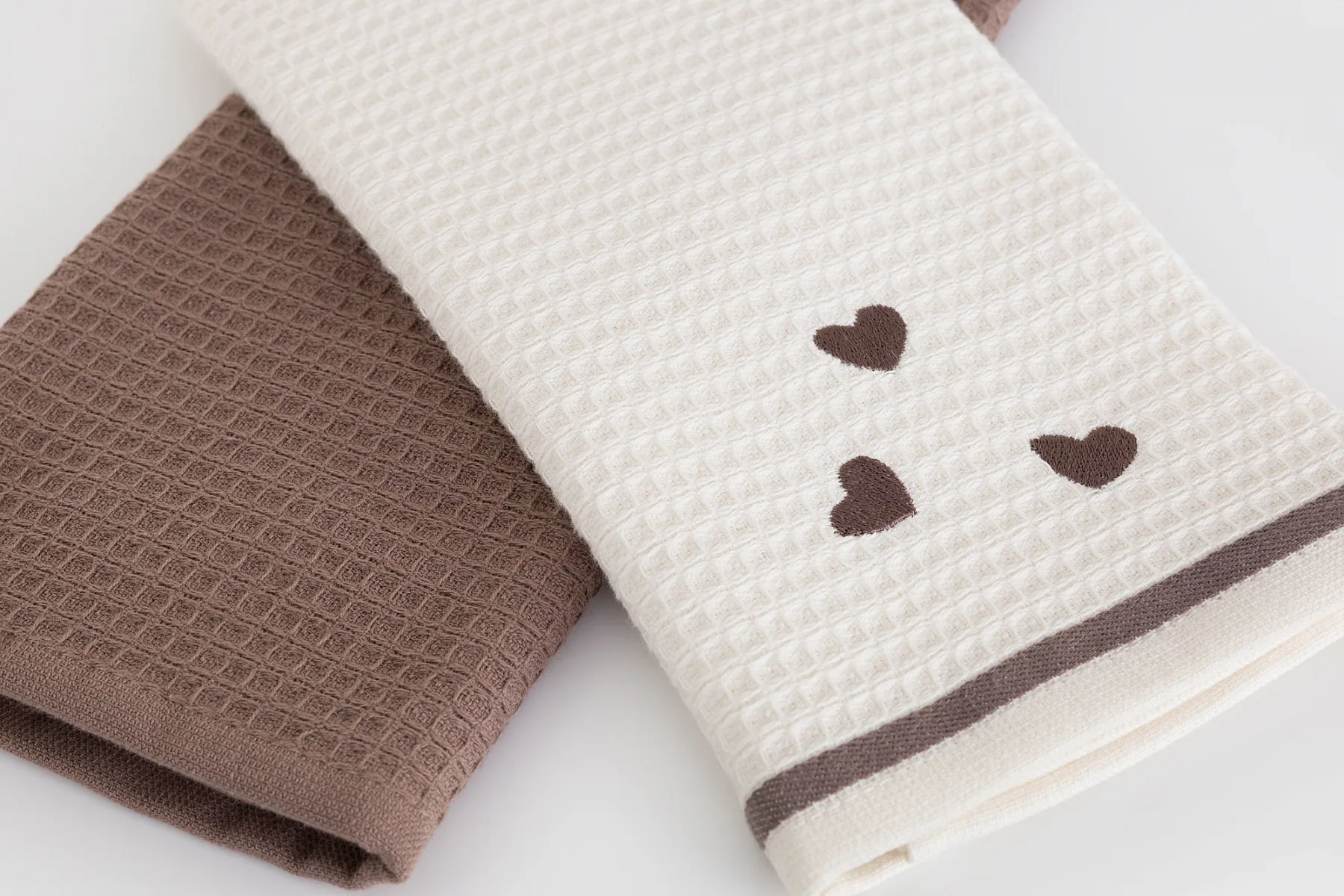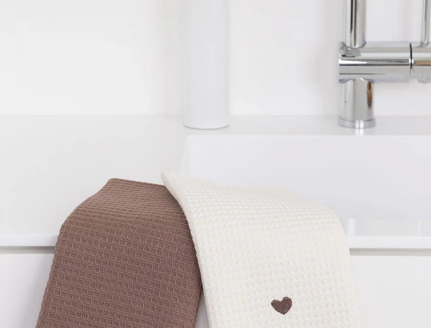 Atraktivní a precizně provedené lesklé výšivky se skvěle doplňují s okouzlujícími barevnými odstíny napříč celou kolekcí vaflových utěrek.